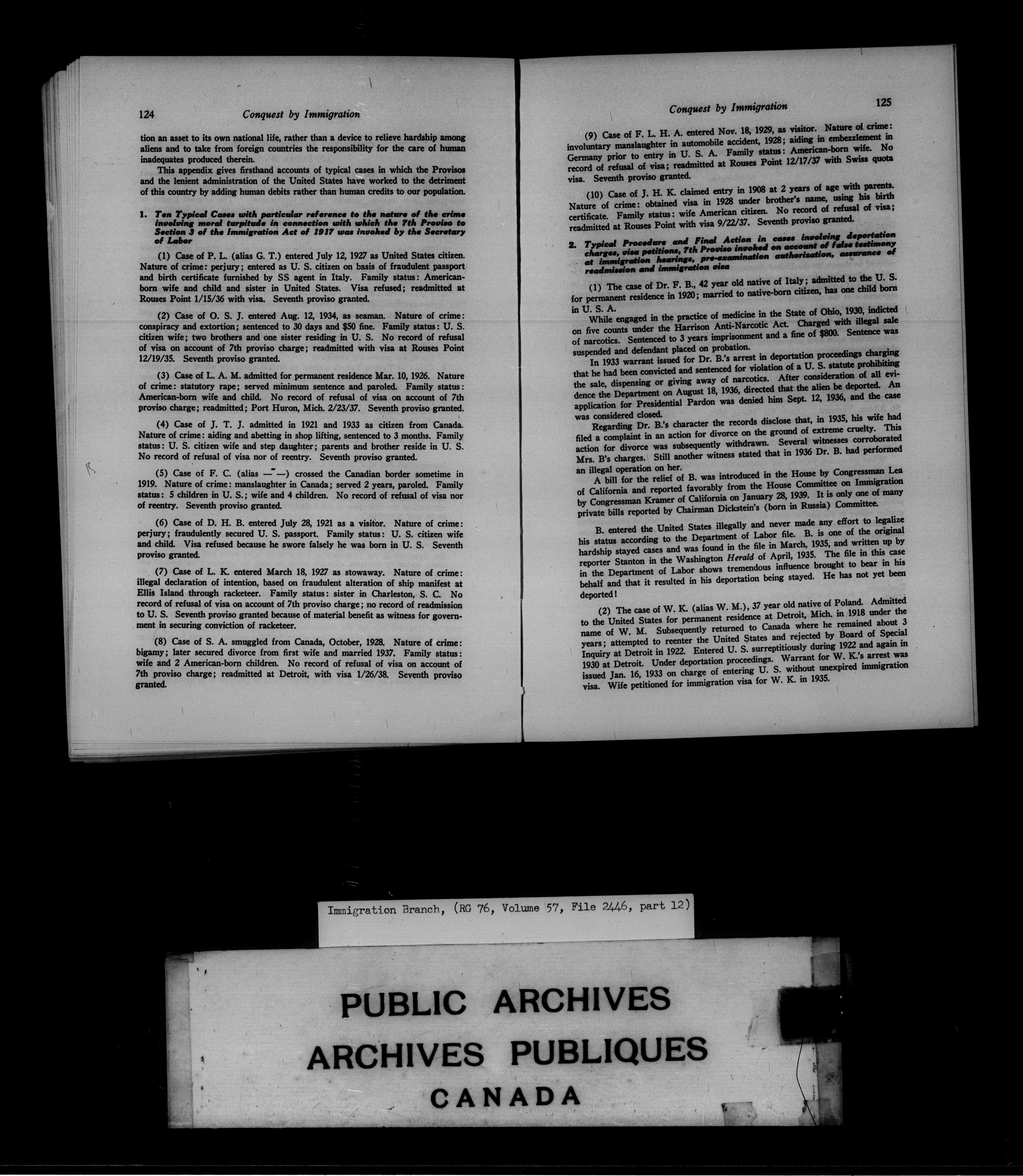 Subject, policy and case files in the First Central Registry series of the Immigration Program, 1892-1950 - 4724