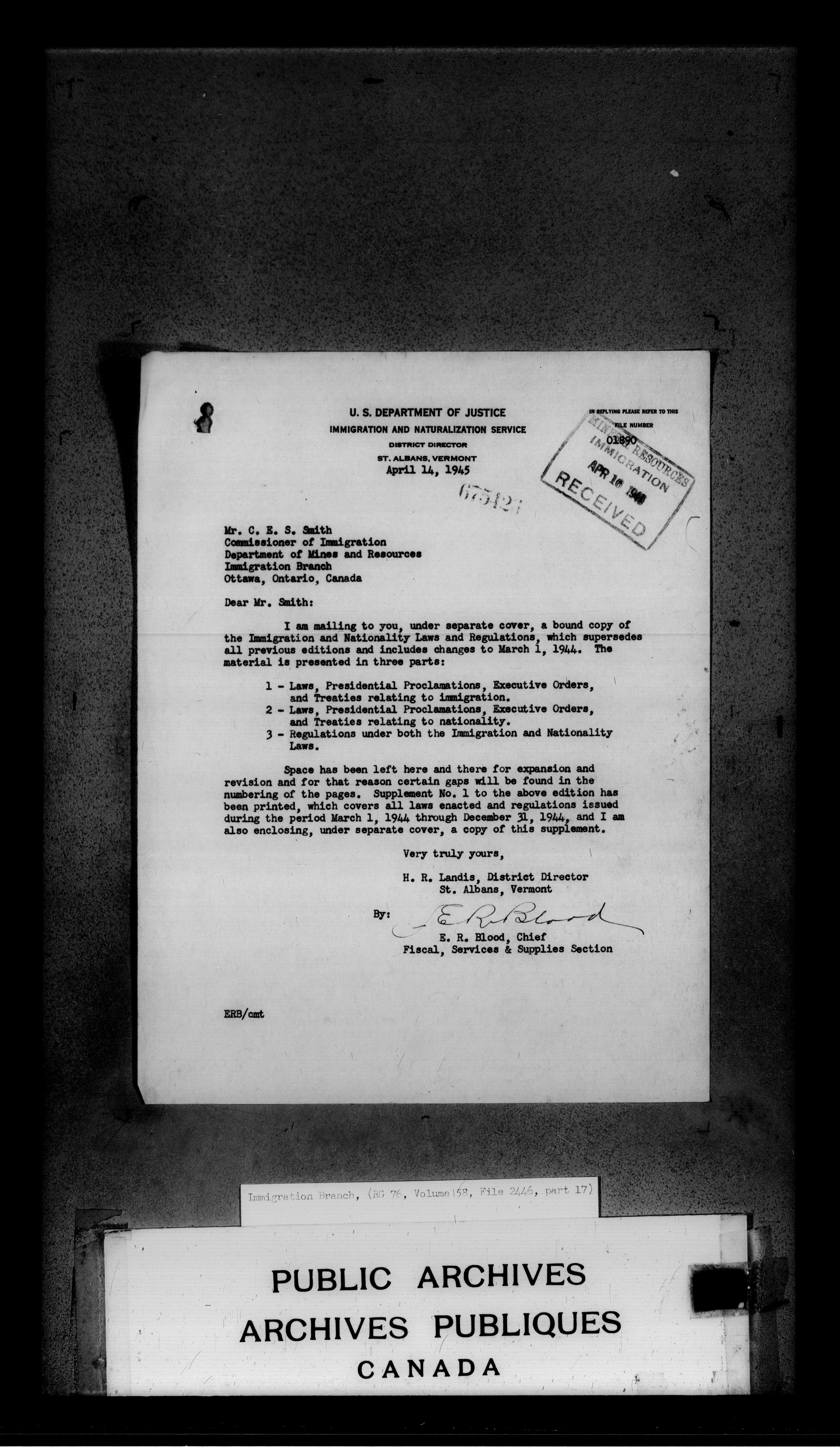 Subject, policy and case files in the First Central Registry series of the Immigration Program, 1892-1950 - 4725