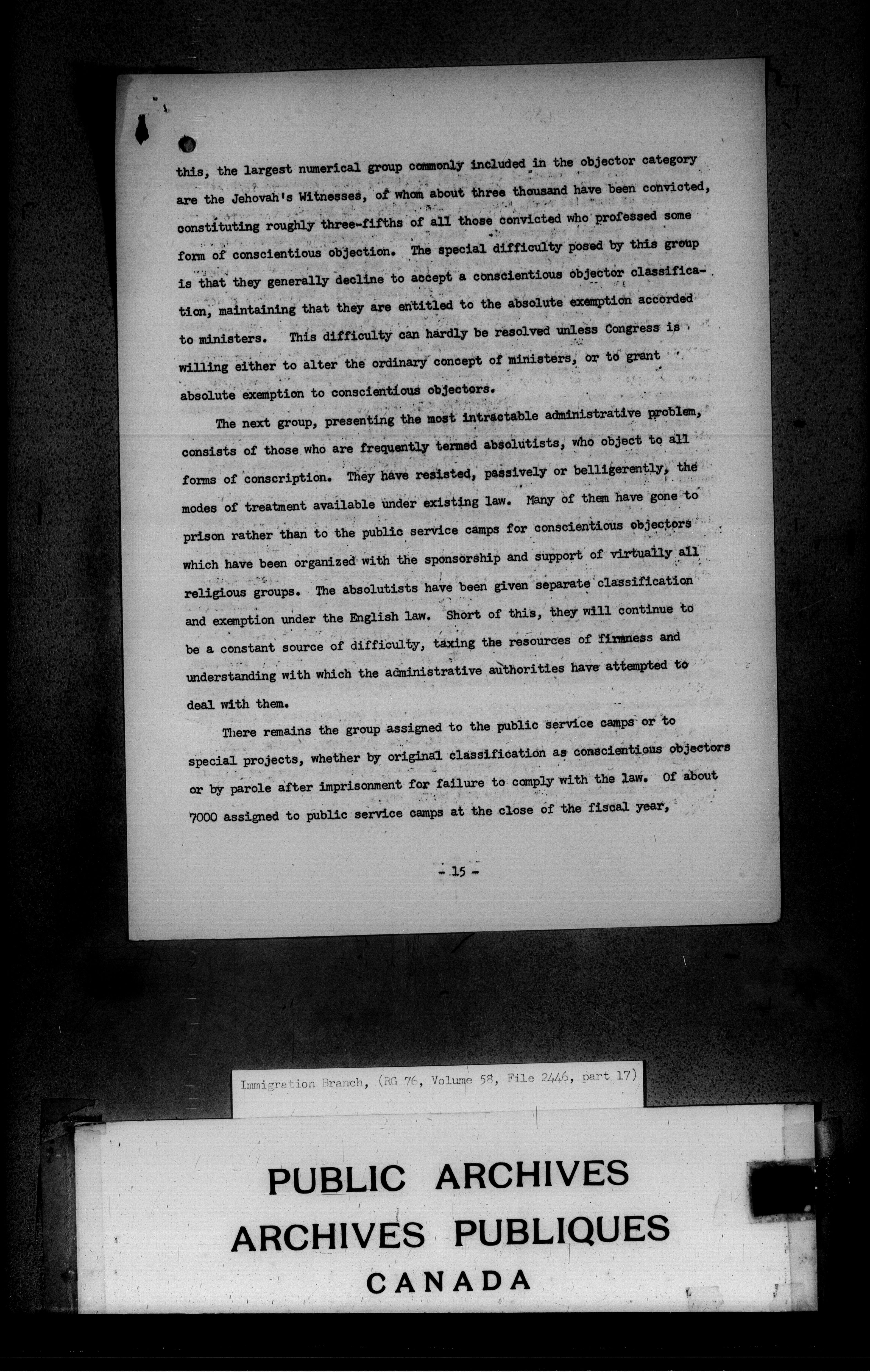 Subject, policy and case files in the First Central Registry series of the Immigration Program, 1892-1950 - 4725
