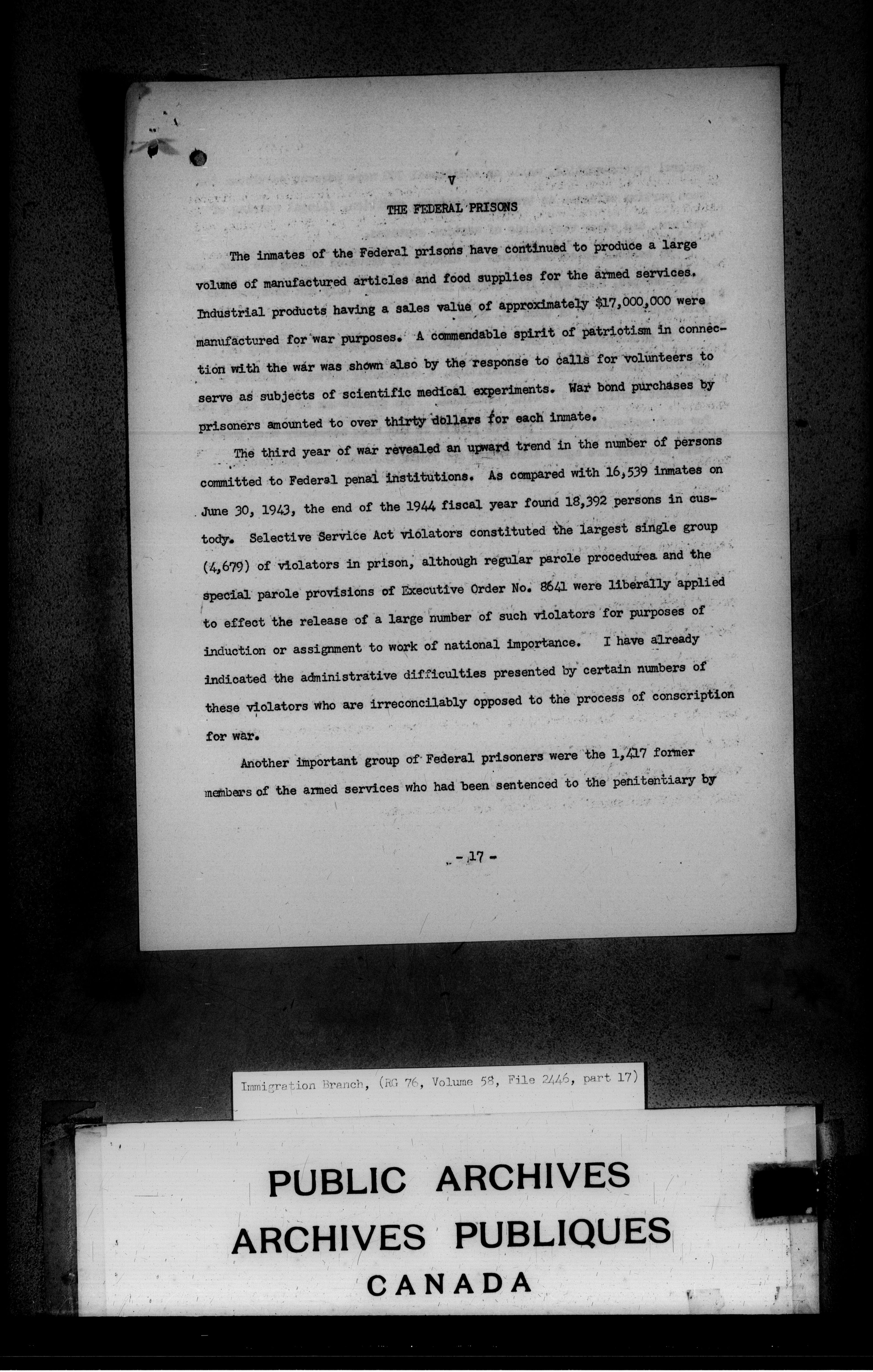 Subject, policy and case files in the First Central Registry series of the Immigration Program, 1892-1950 - 4725