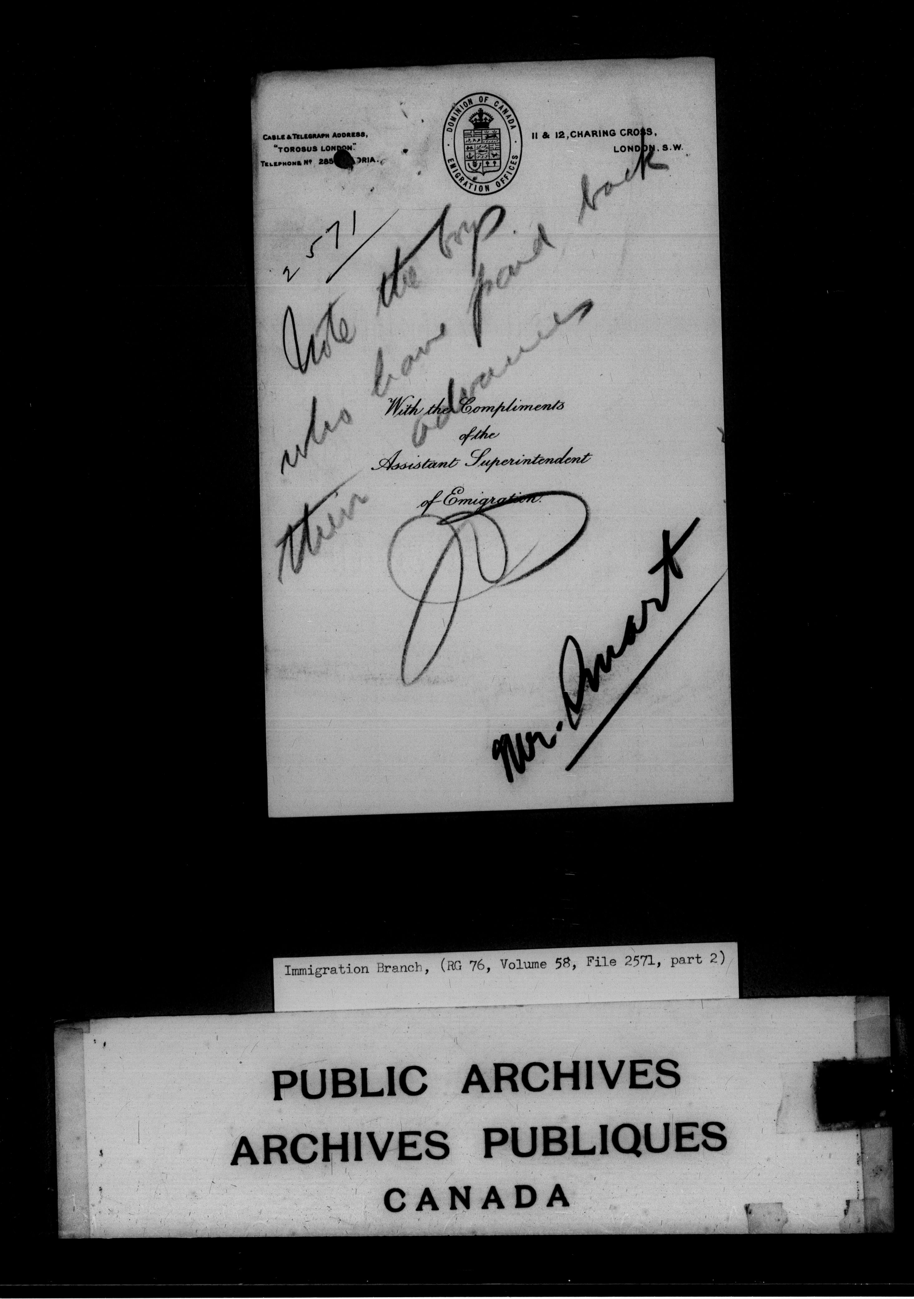 Subject, policy and case files in the First Central Registry series of the Immigration Program, 1892-1950 - 4726