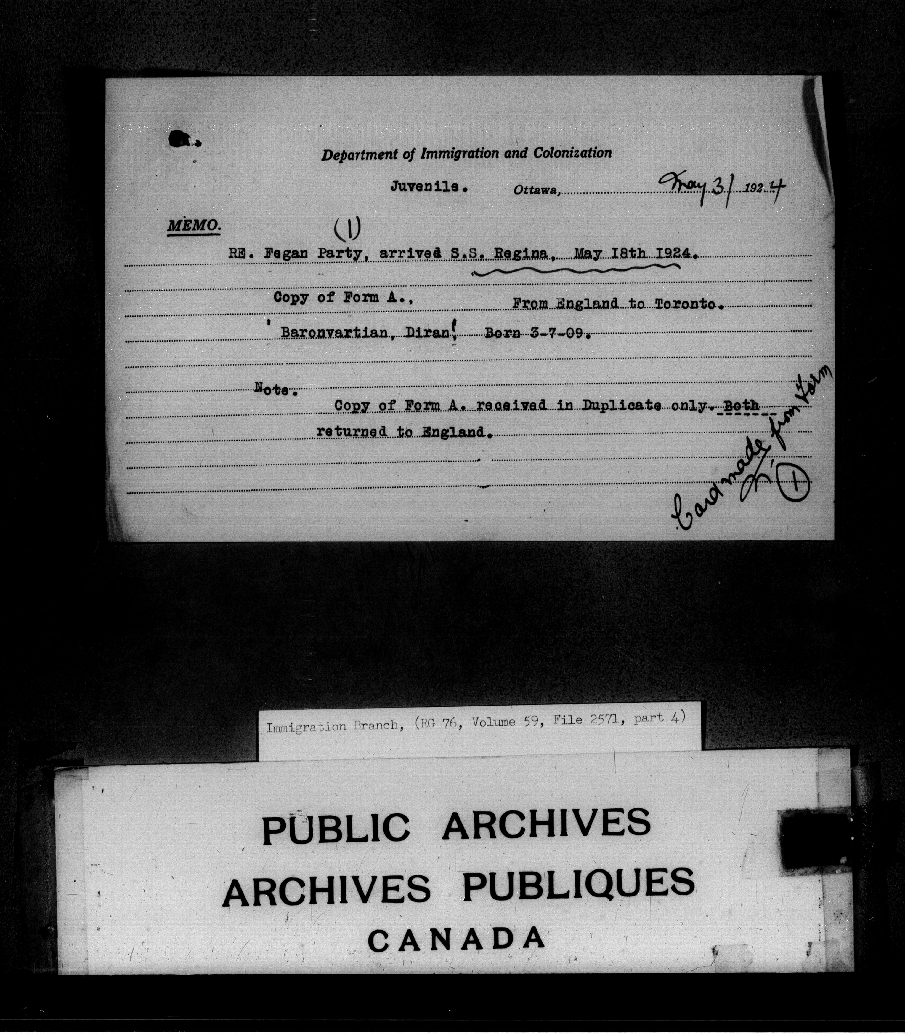 Subject, policy and case files in the First Central Registry series of the Immigration Program, 1892-1950 - 4726
