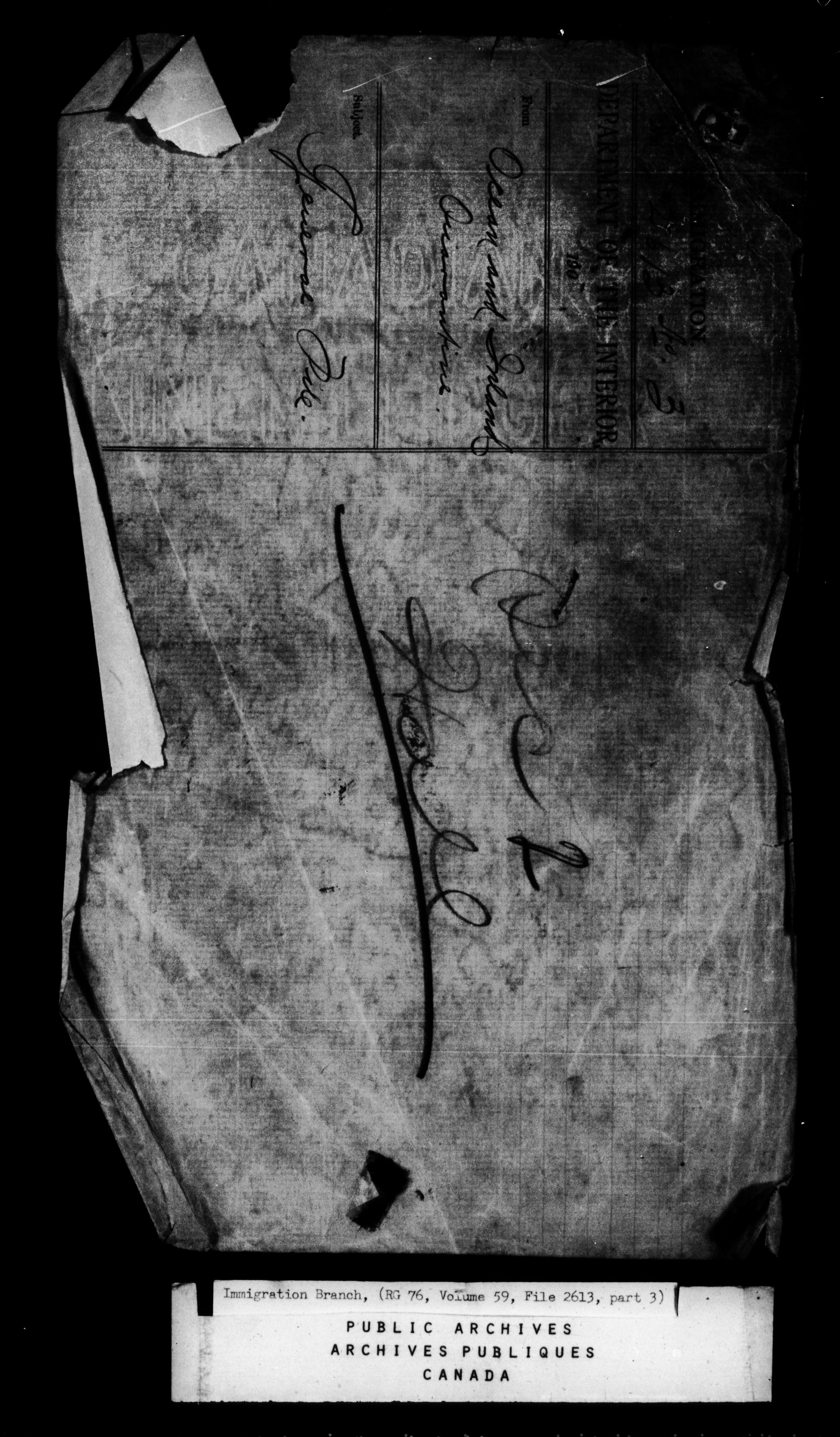 Subject, policy and case files in the First Central Registry series of the Immigration Program, 1892-1950 - 4728