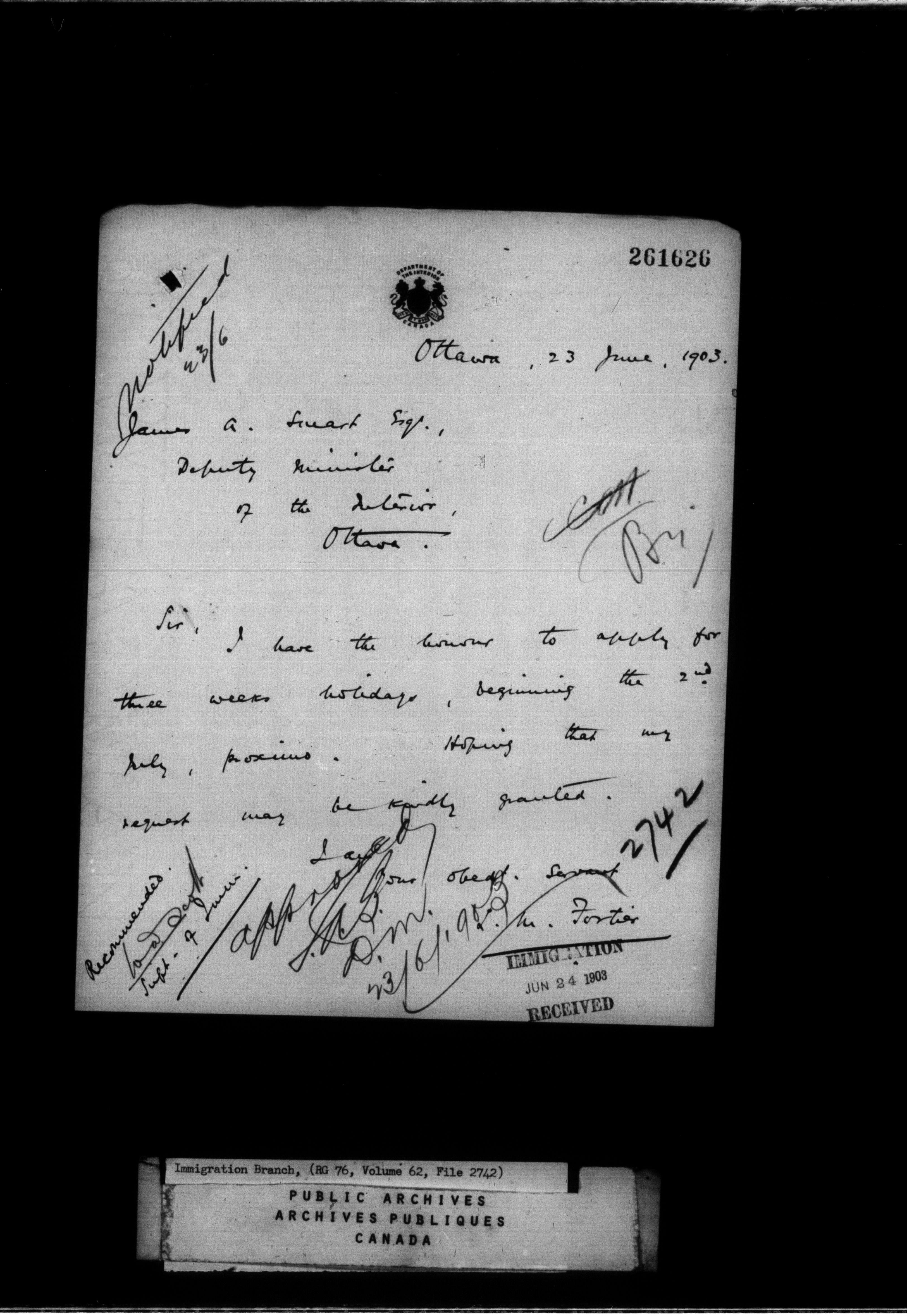 Subject, policy and case files in the First Central Registry series of the Immigration Program, 1892-1950 - 4731