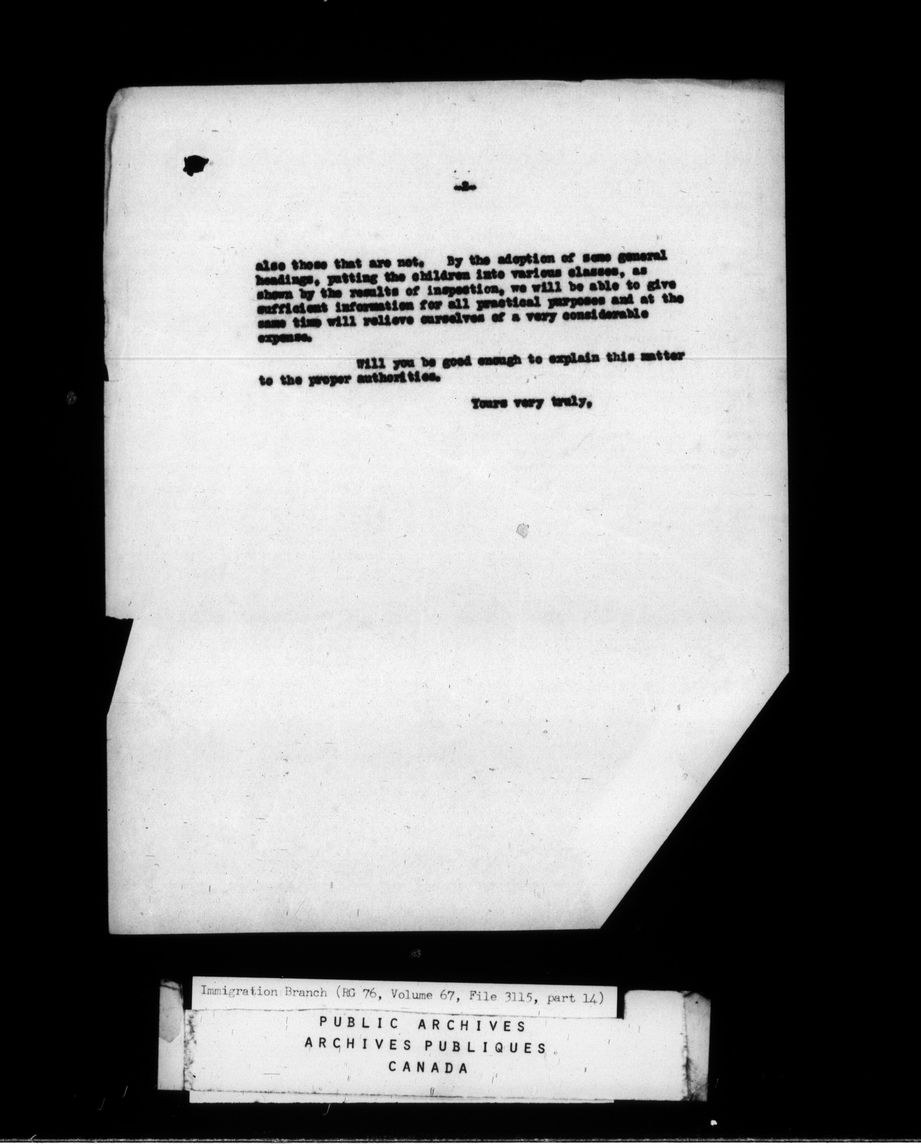 Subject, policy and case files in the First Central Registry series of the Immigration Program, 1892-1950 - 4735