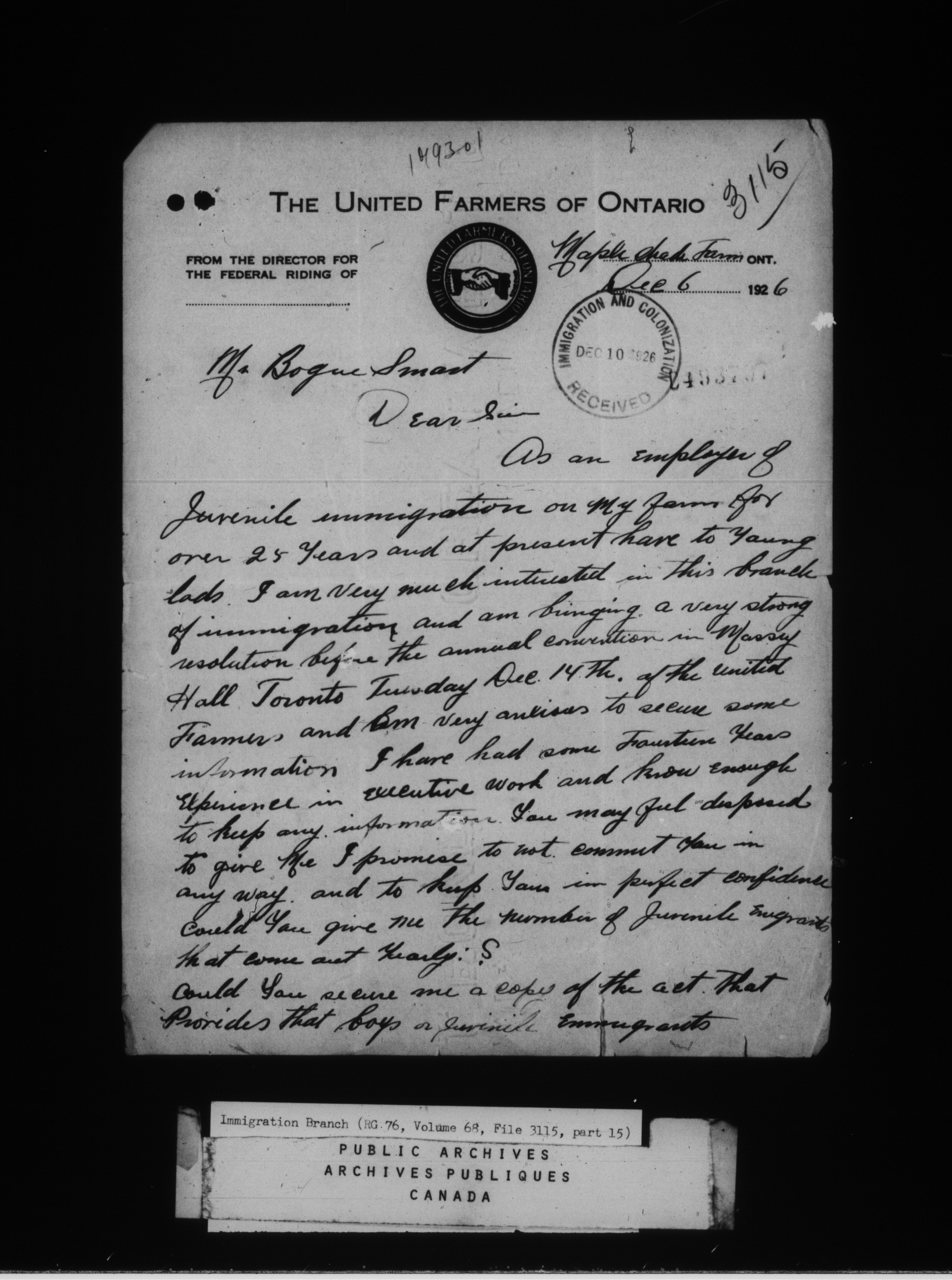 Subject, policy and case files in the First Central Registry series of the Immigration Program, 1892-1950 : C-4736