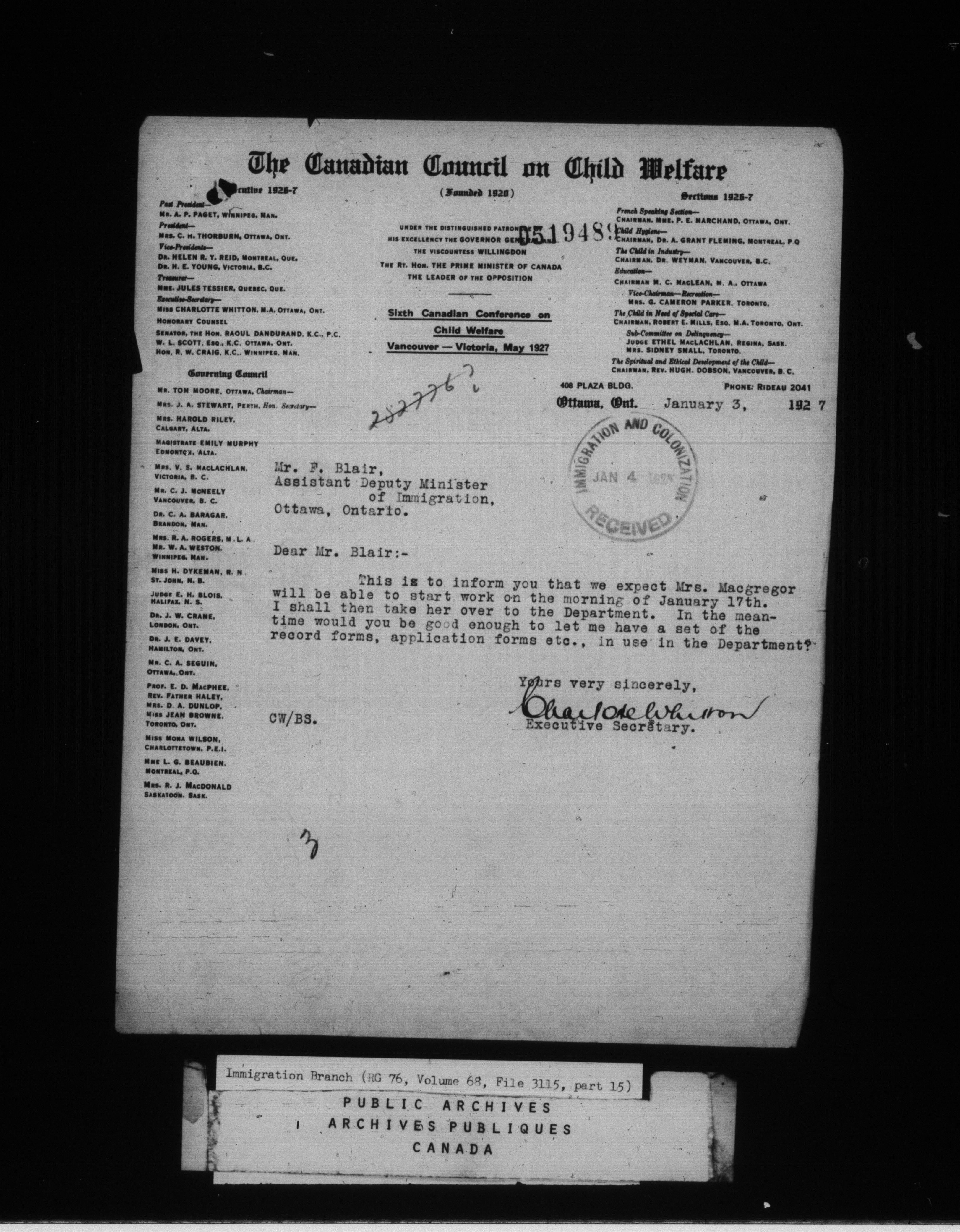 Subject, policy and case files in the First Central Registry series of the Immigration Program, 1892-1950 : C-4736
