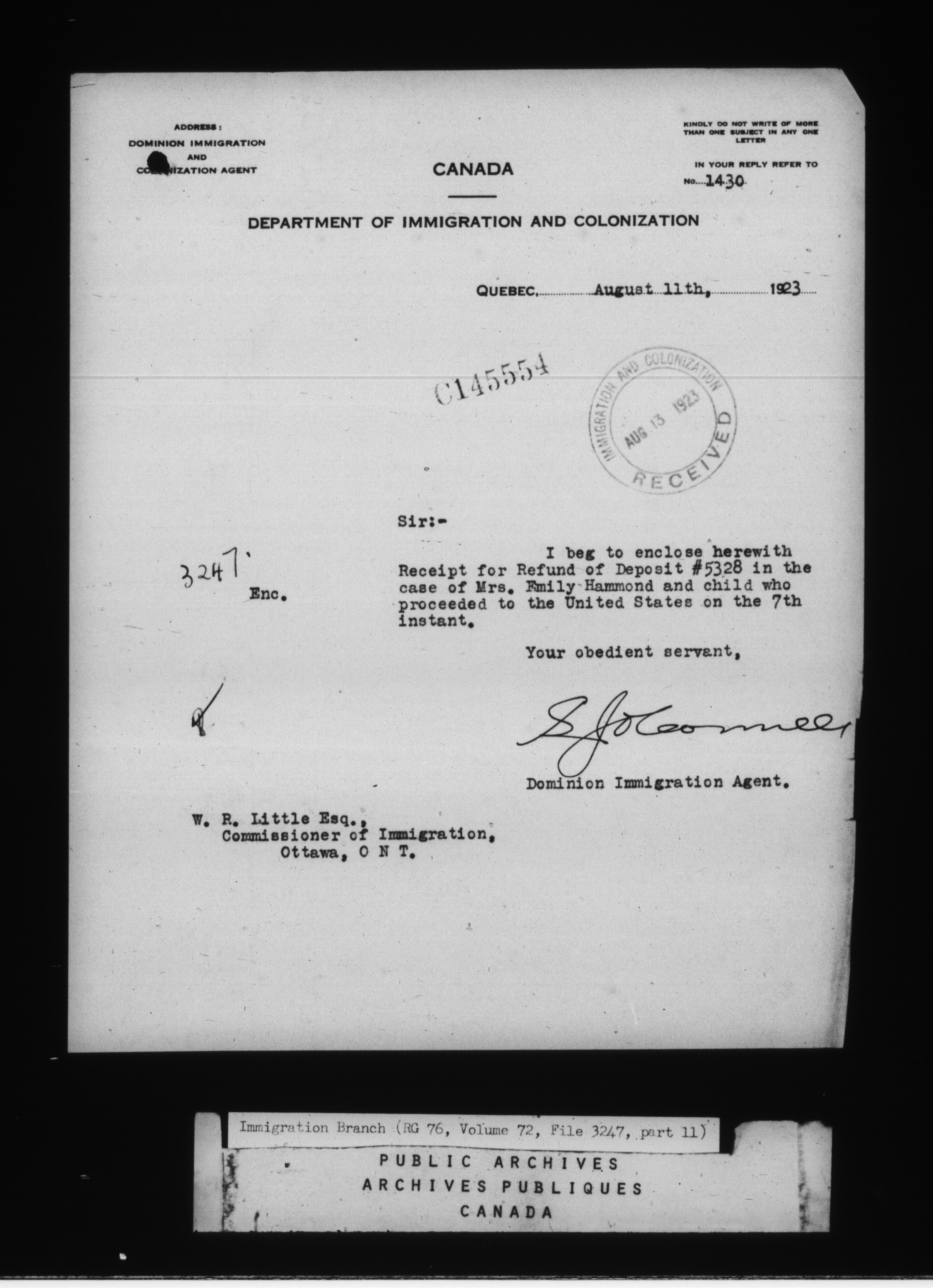 Subject, policy and case files in the First Central Registry series of the Immigration Program, 1892-1950 - 4739
