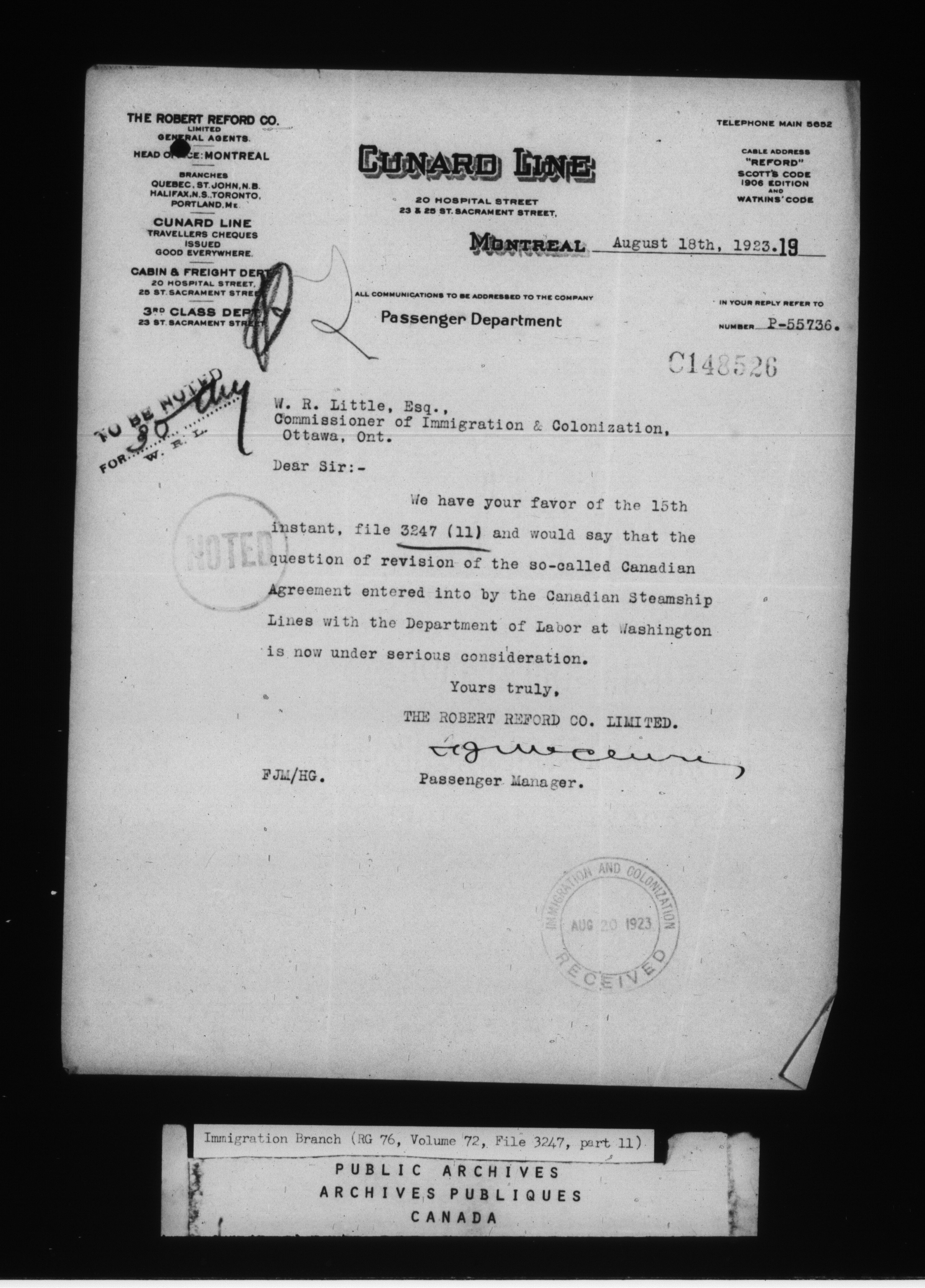 Subject, policy and case files in the First Central Registry series of the Immigration Program, 1892-1950 - 4739