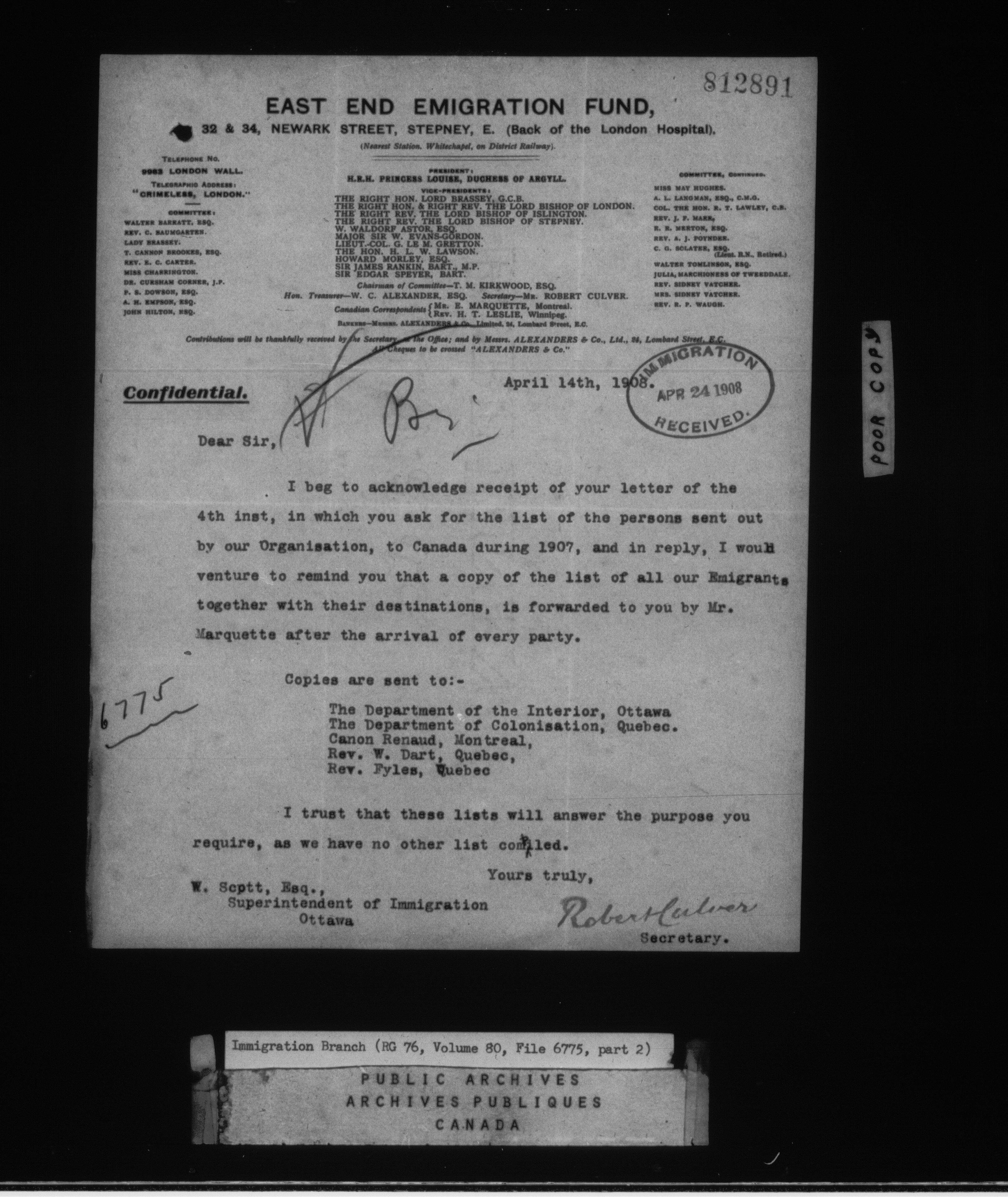Subject, policy and case files in the First Central Registry series of the Immigration Program, 1892-1950 - 4747