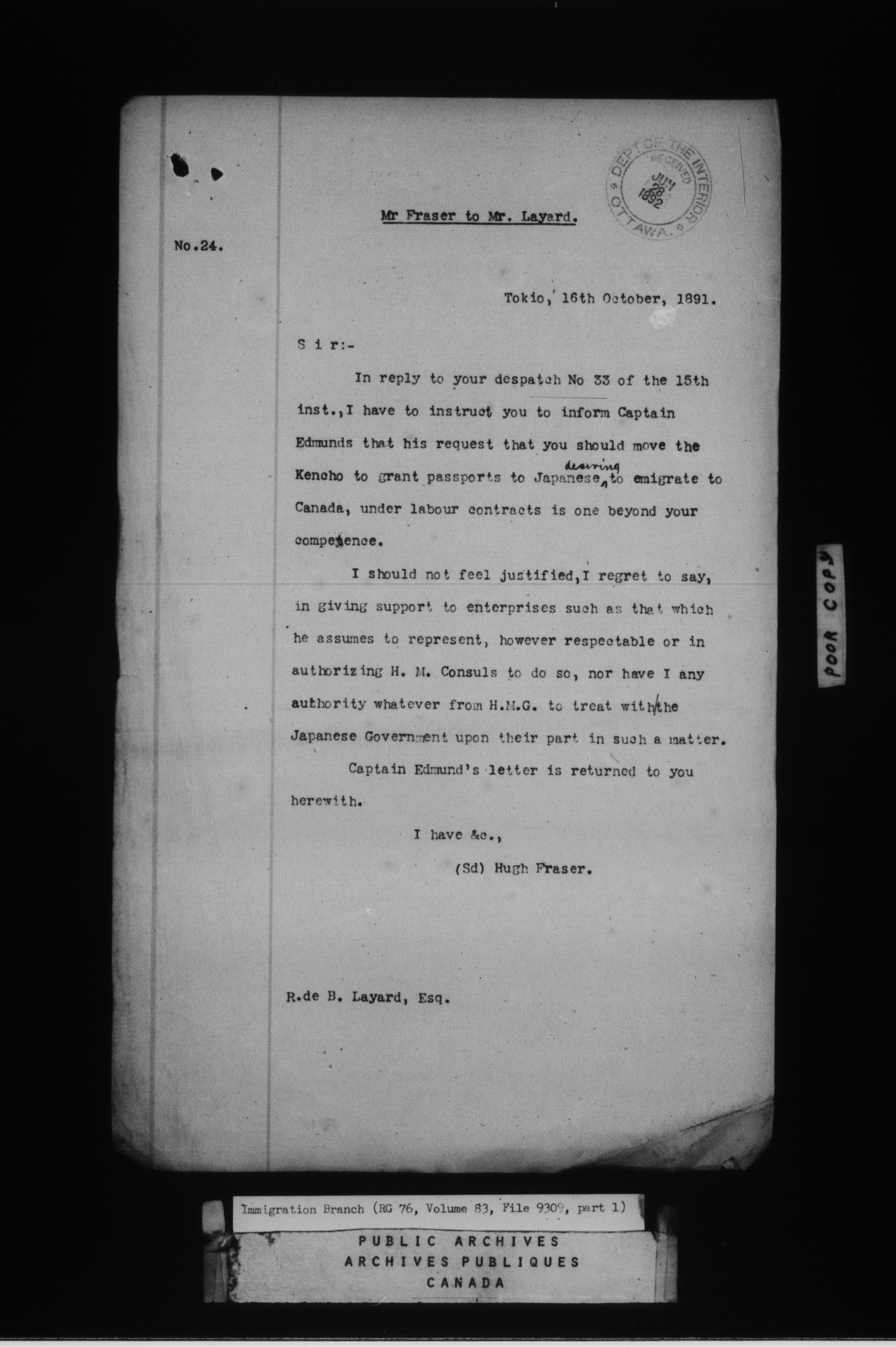 Subject, policy and case files in the First Central Registry series of the Immigration Program, 1892-1950 - 4750