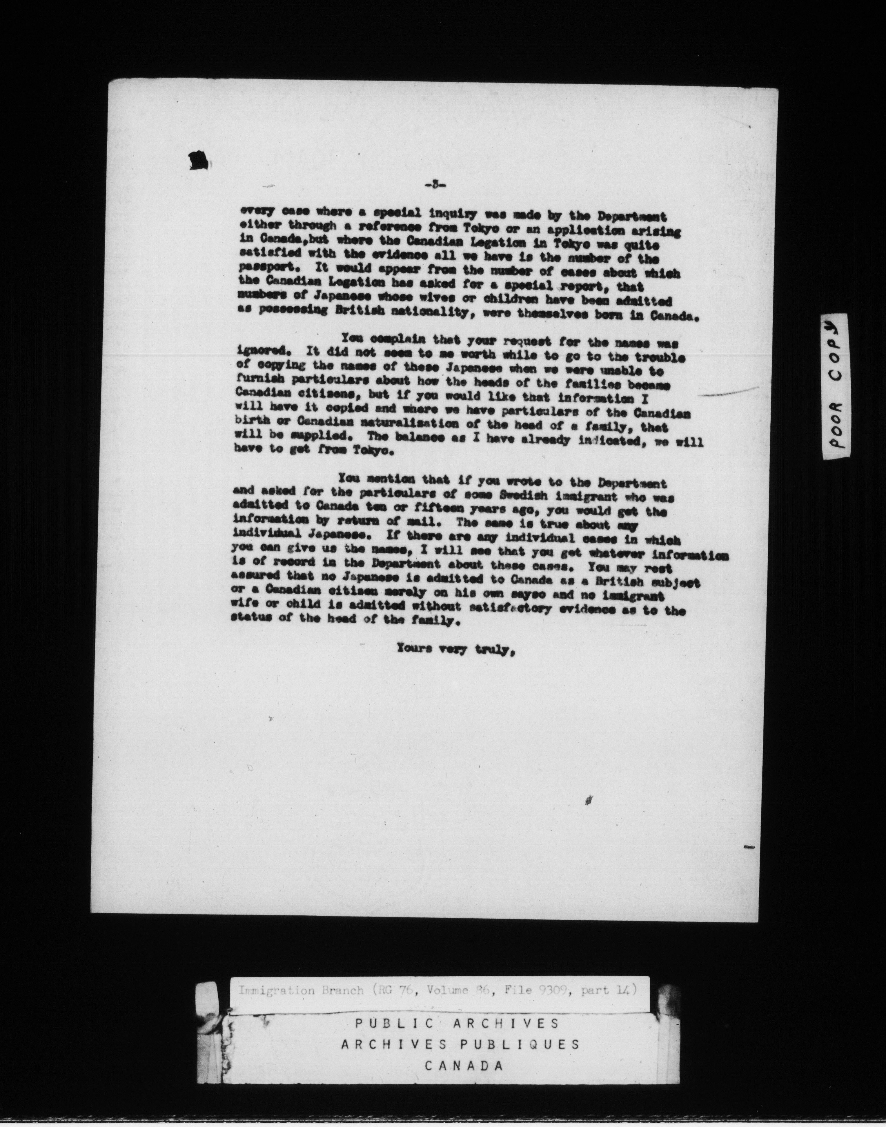 Subject, policy and case files in the First Central Registry series of the Immigration Program, 1892-1950 - 4752