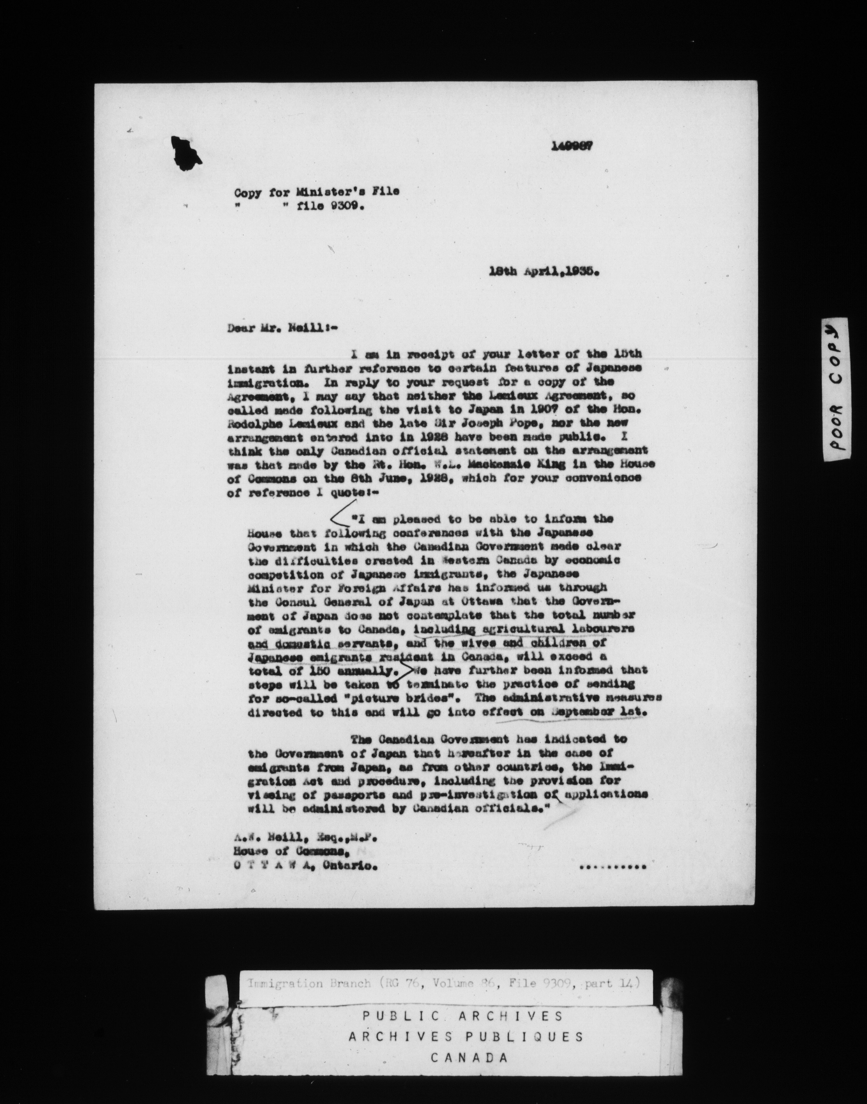 Subject, policy and case files in the First Central Registry series of the Immigration Program, 1892-1950 - 4752