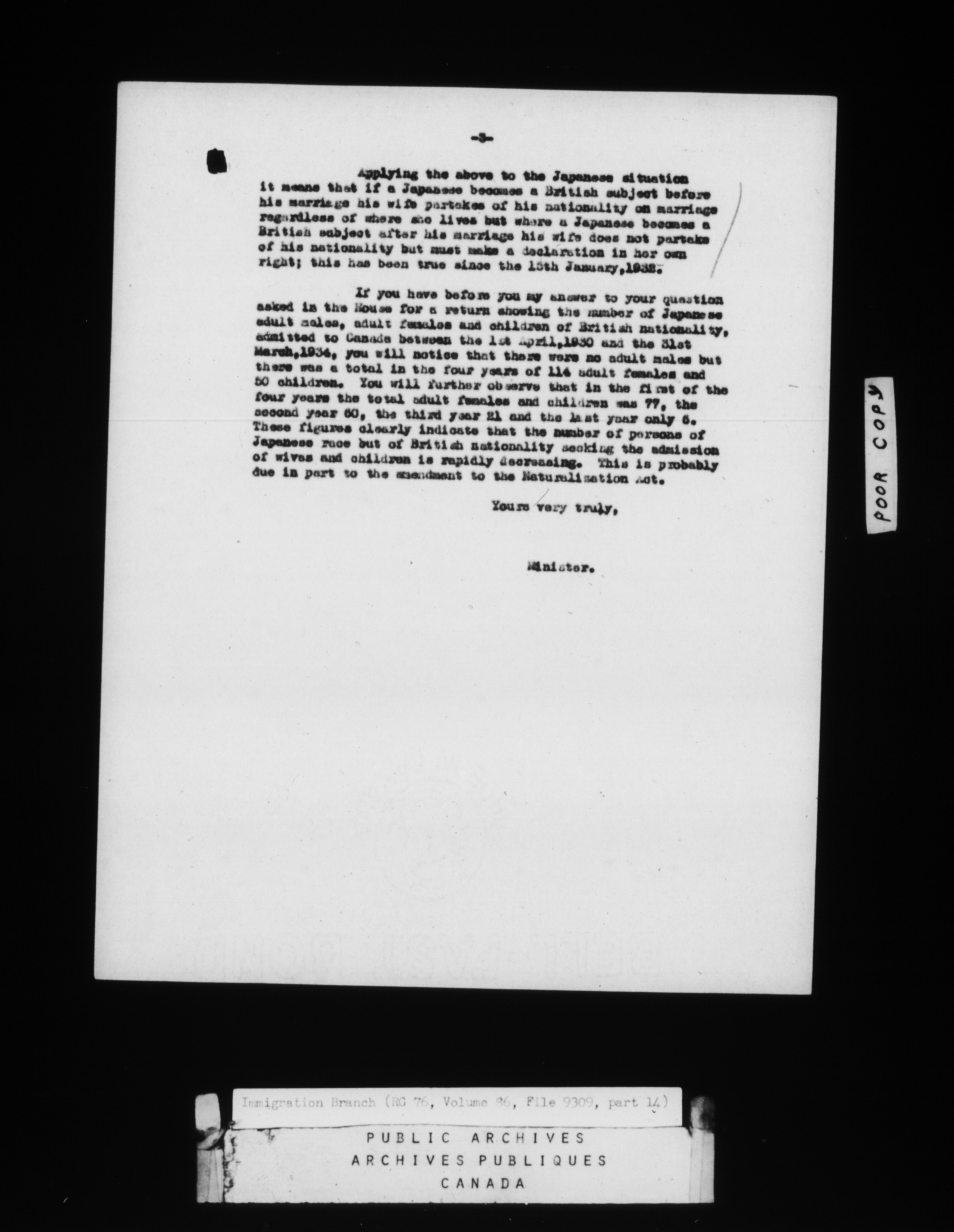 Subject, policy and case files in the First Central Registry series of the Immigration Program, 1892-1950 - 4752