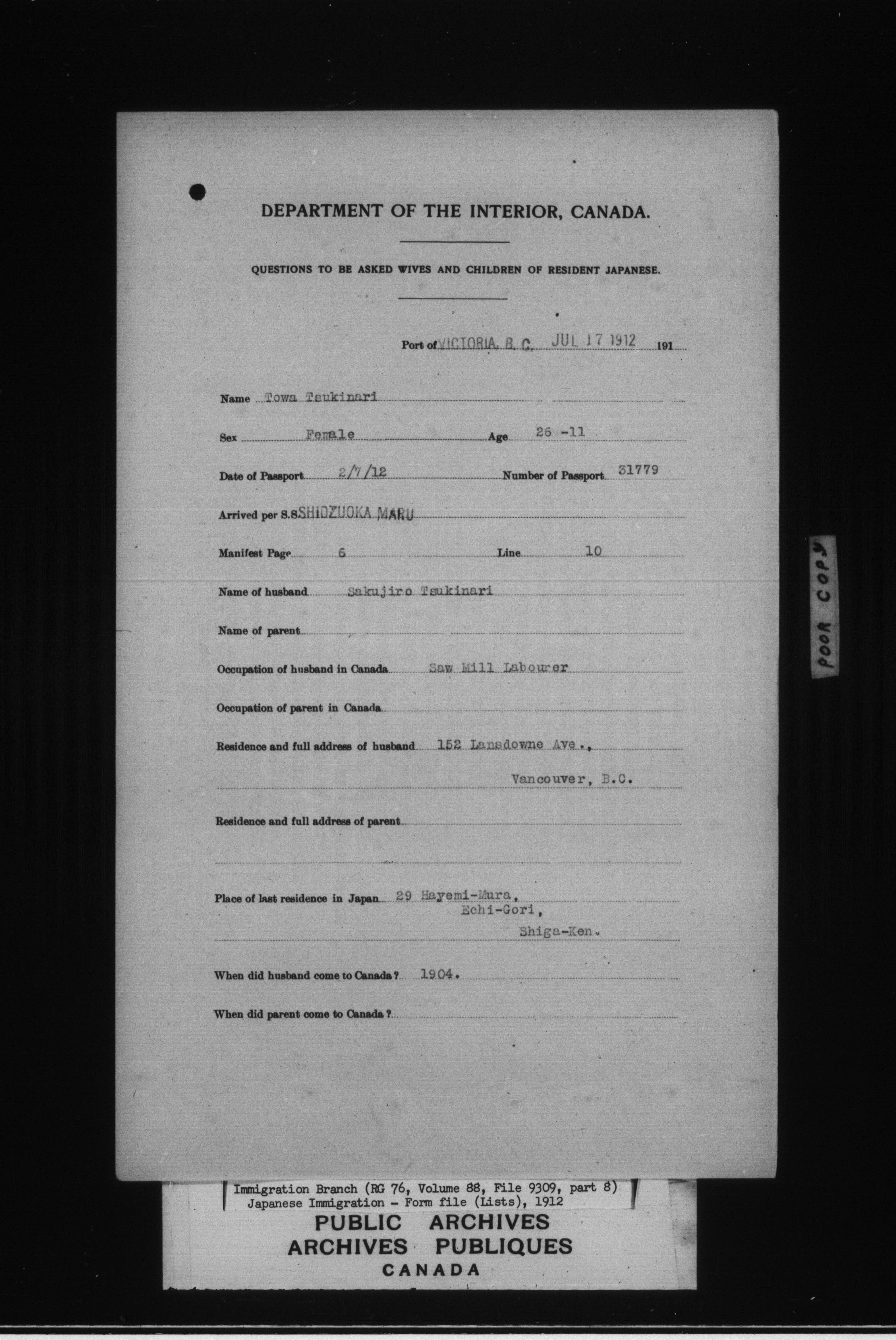 Subject, policy and case files in the First Central Registry series of the Immigration Program, 1892-1950 - 4754
