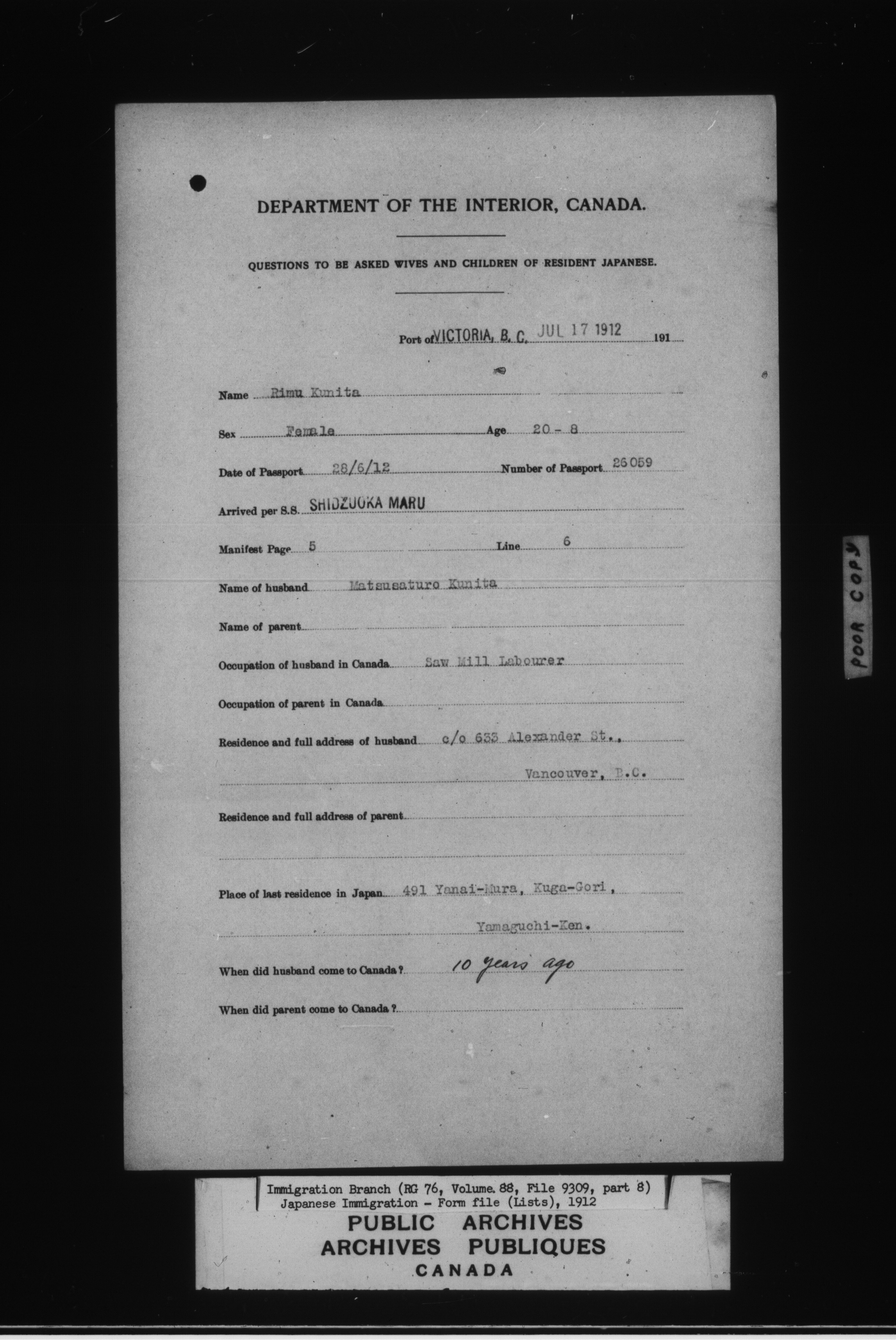 Subject, policy and case files in the First Central Registry series of the Immigration Program, 1892-1950 - 4754