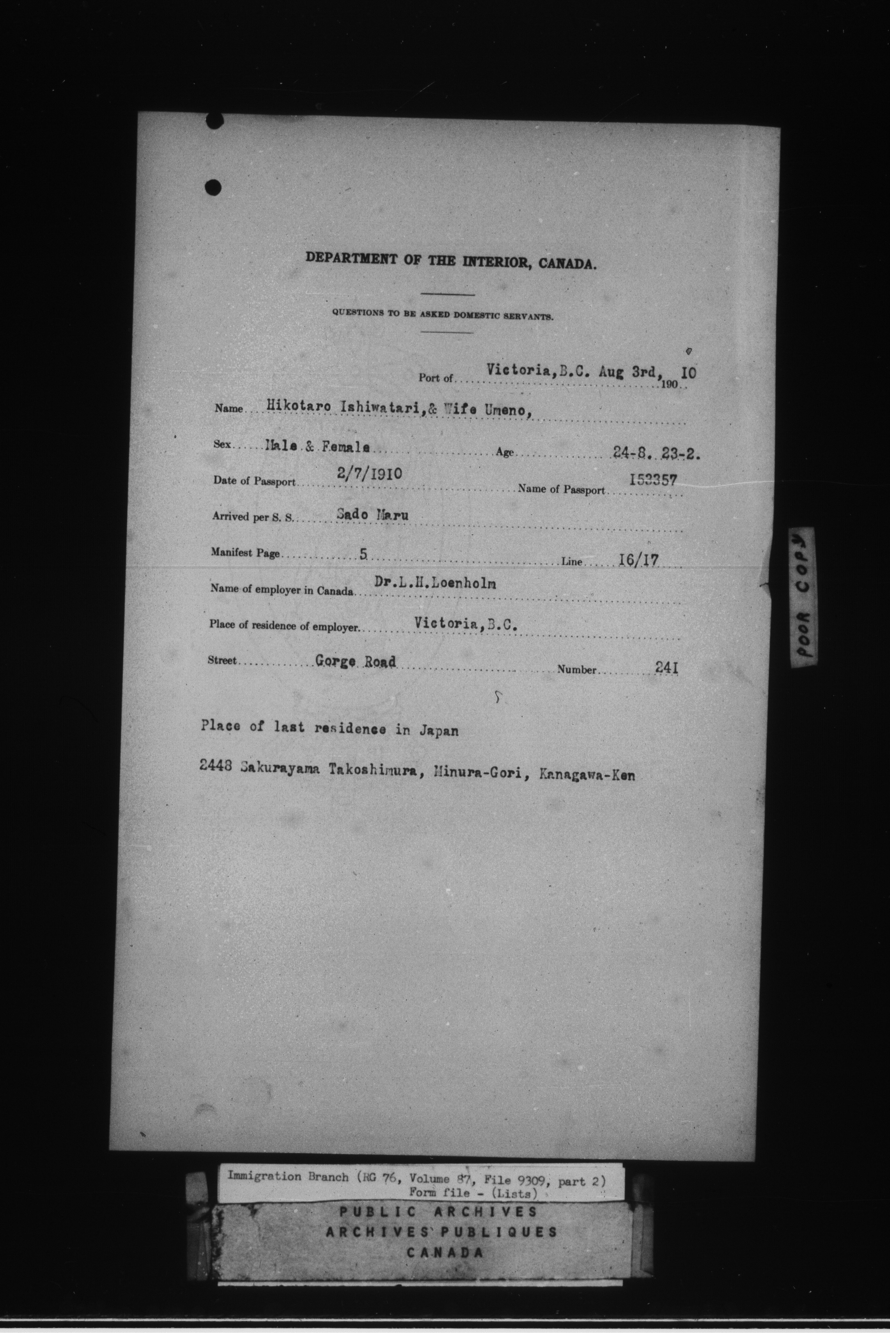 Subject, policy and case files in the First Central Registry series of the Immigration Program, 1892-1950 - 4754