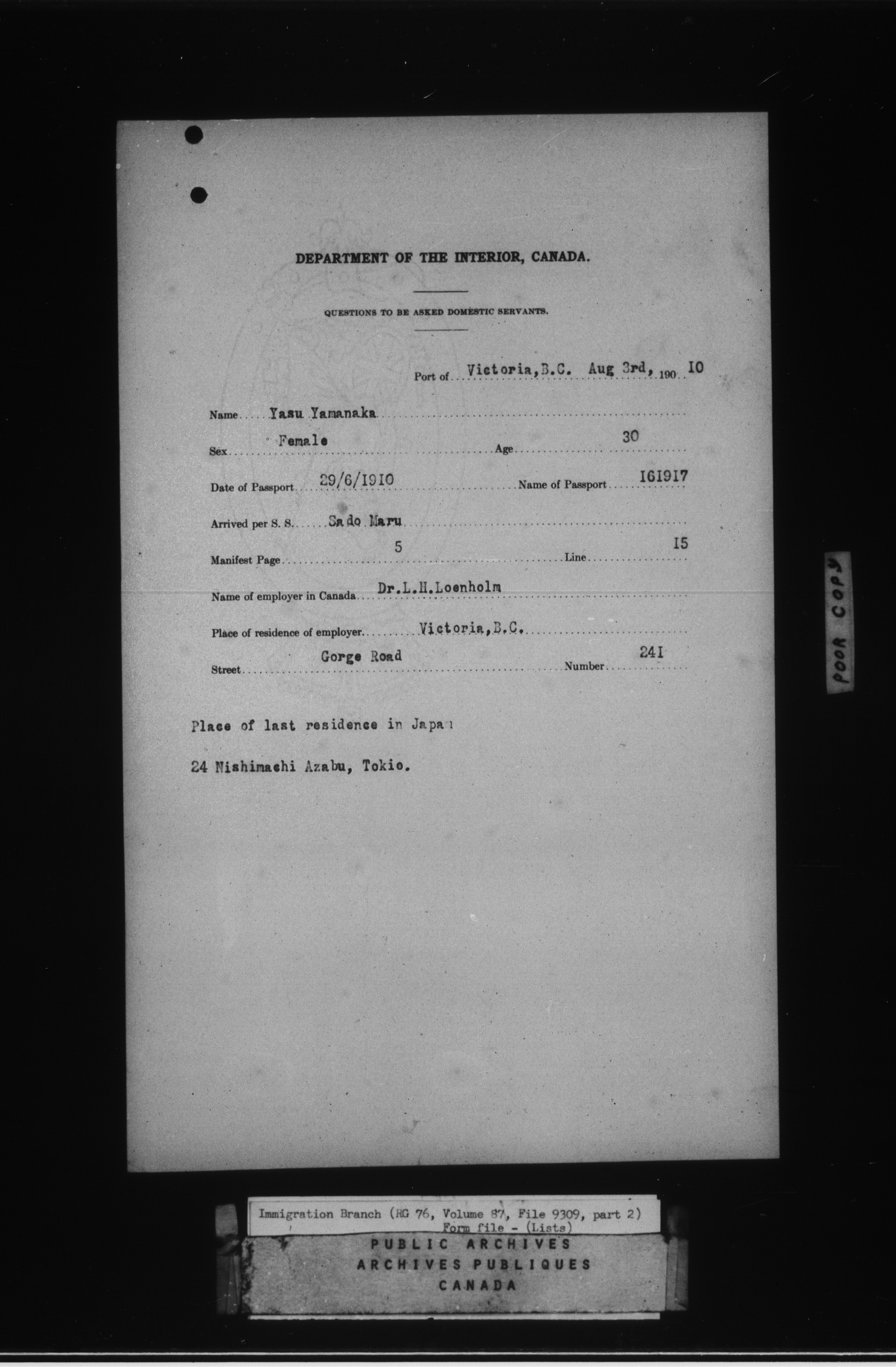 Subject, policy and case files in the First Central Registry series of the Immigration Program, 1892-1950 - 4754