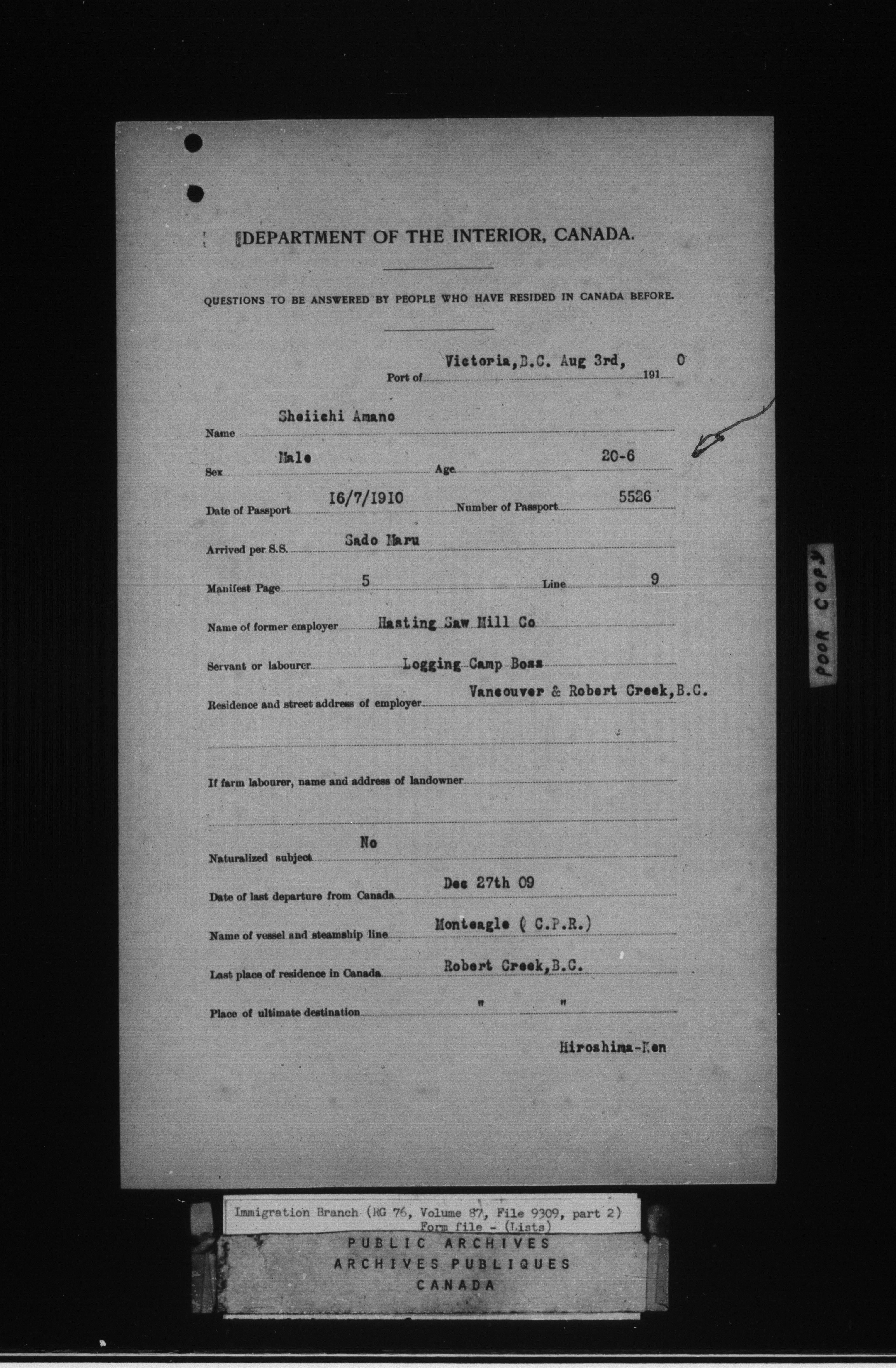 Subject, policy and case files in the First Central Registry series of the Immigration Program, 1892-1950 - 4754