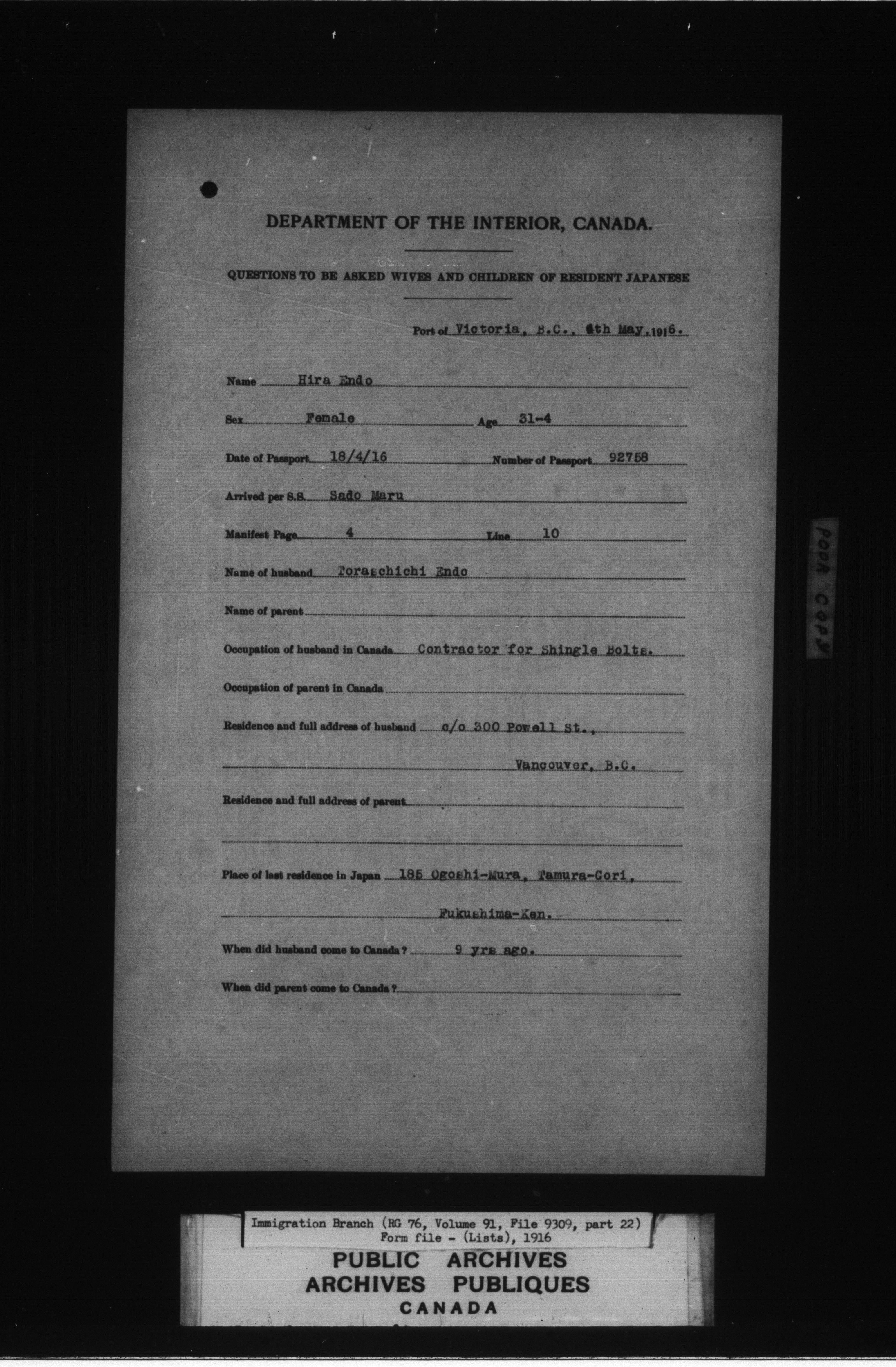 Subject, policy and case files in the First Central Registry series of the Immigration Program, 1892-1950 - 4757