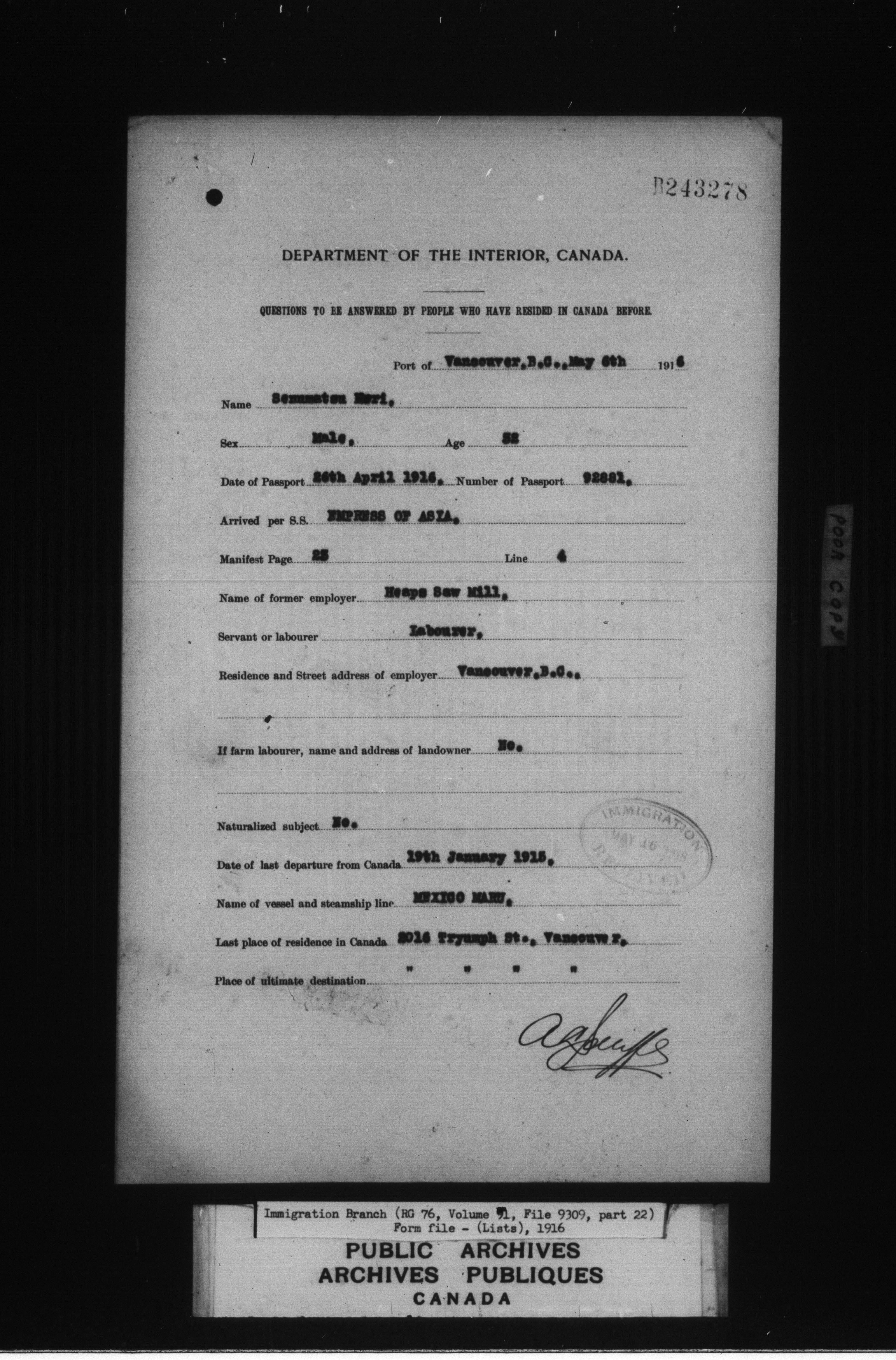 Subject, policy and case files in the First Central Registry series of the Immigration Program, 1892-1950 - 4757
