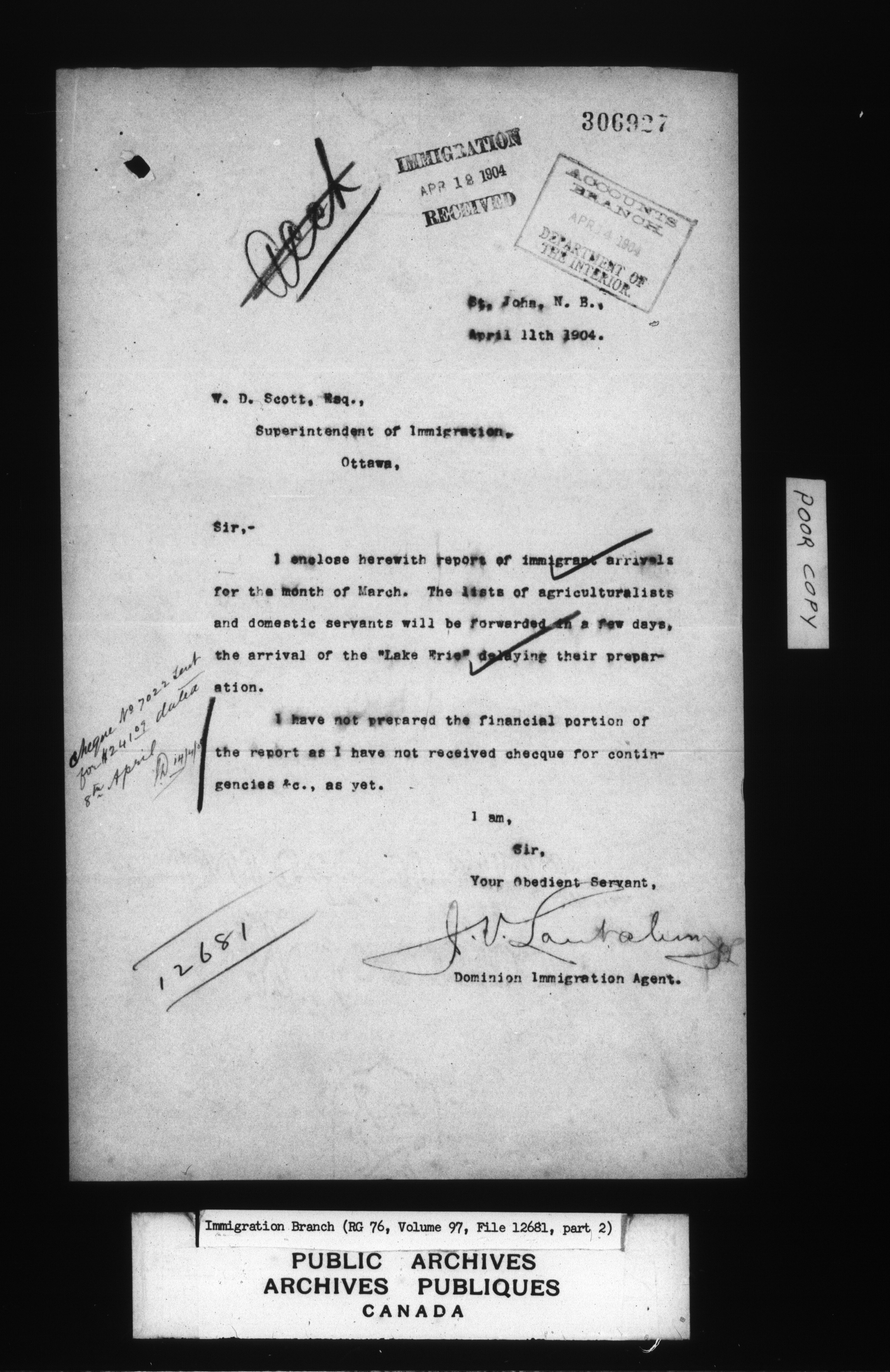 Subject, policy and case files in the First Central Registry series of the Immigration Program, 1892-1950 - 4762