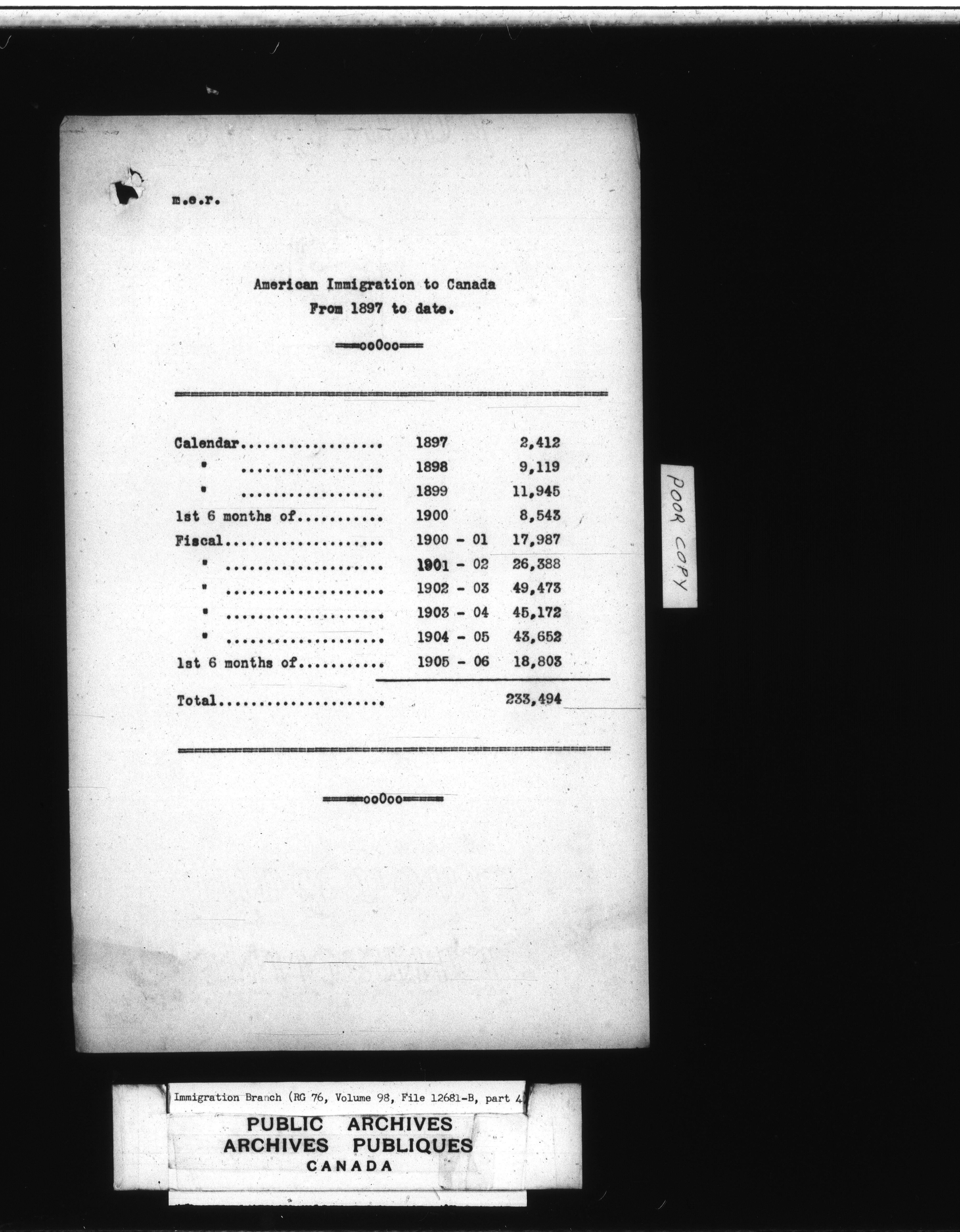 Subject, policy and case files in the First Central Registry series of the Immigration Program, 1892-1950 - 4763