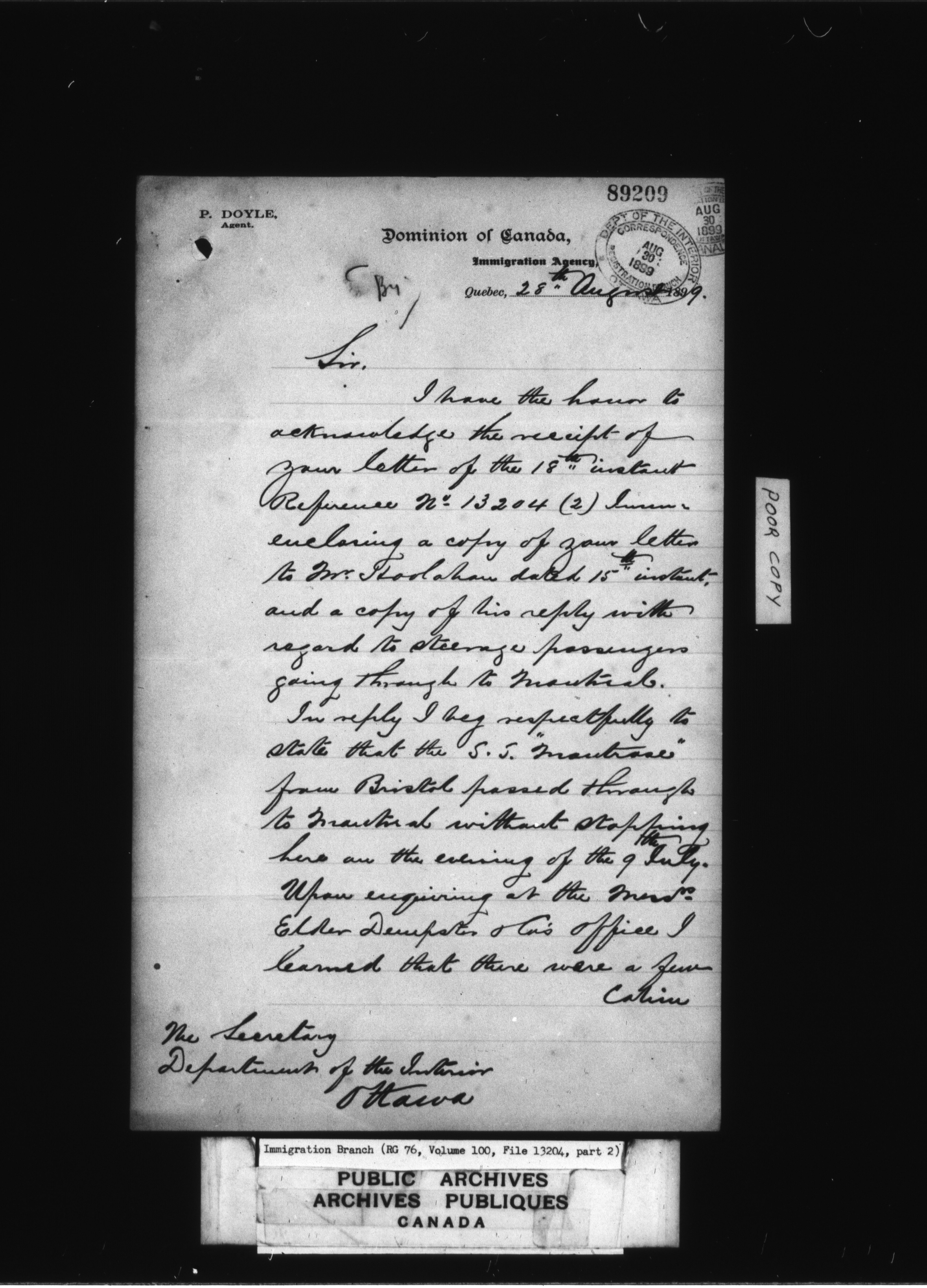 Subject, policy and case files in the First Central Registry series of the Immigration Program, 1892-1950 - 4764
