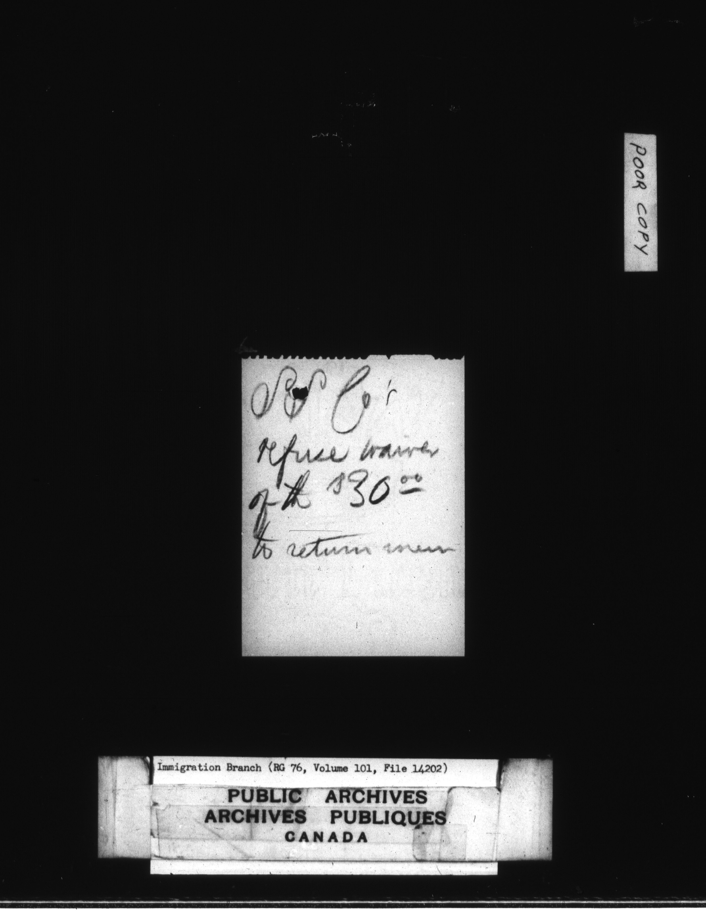 Subject, policy and case files in the First Central Registry series of the Immigration Program, 1892-1950 - 4765