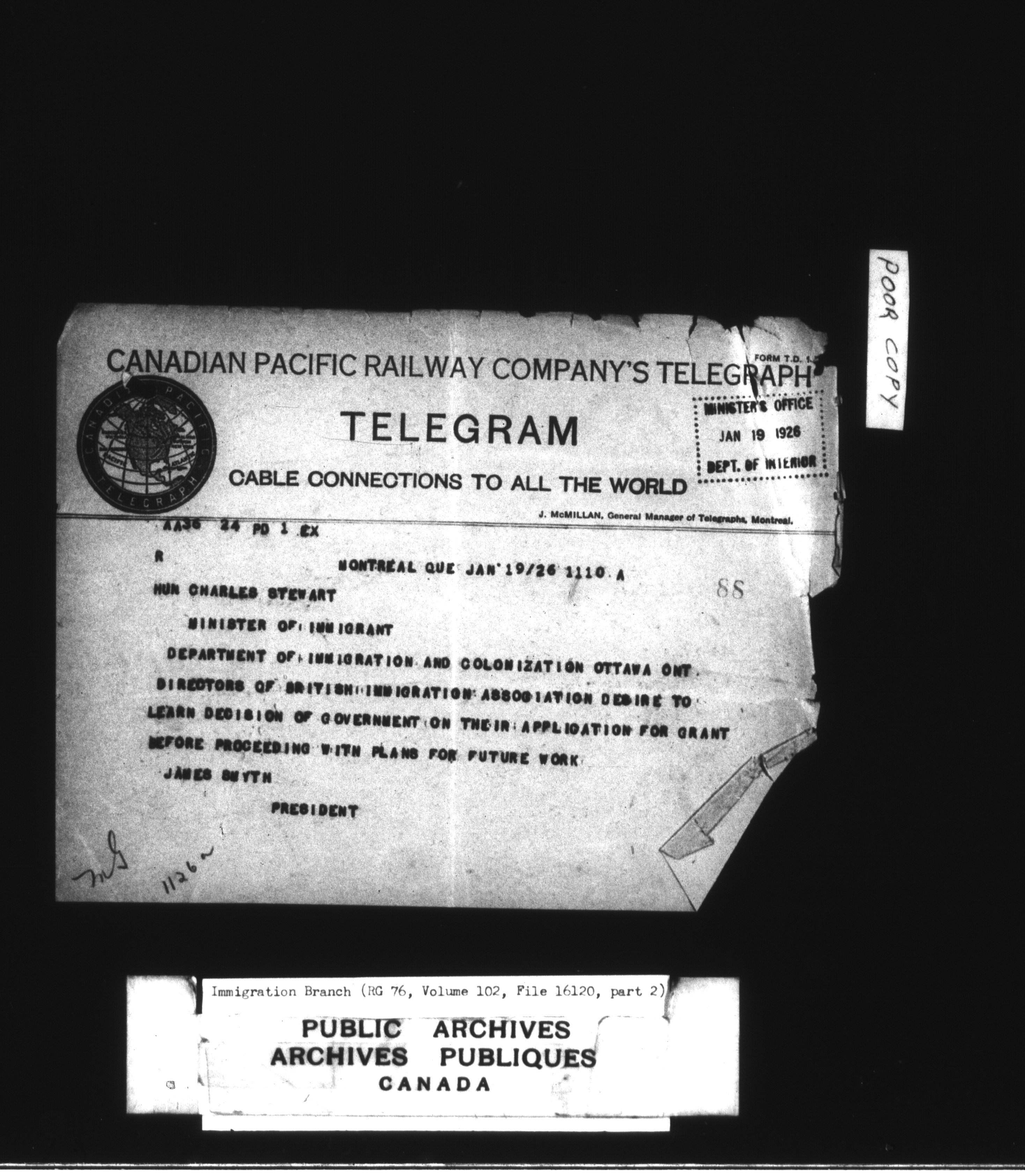 Subject, policy and case files in the First Central Registry series of the Immigration Program, 1892-1950 - 4766