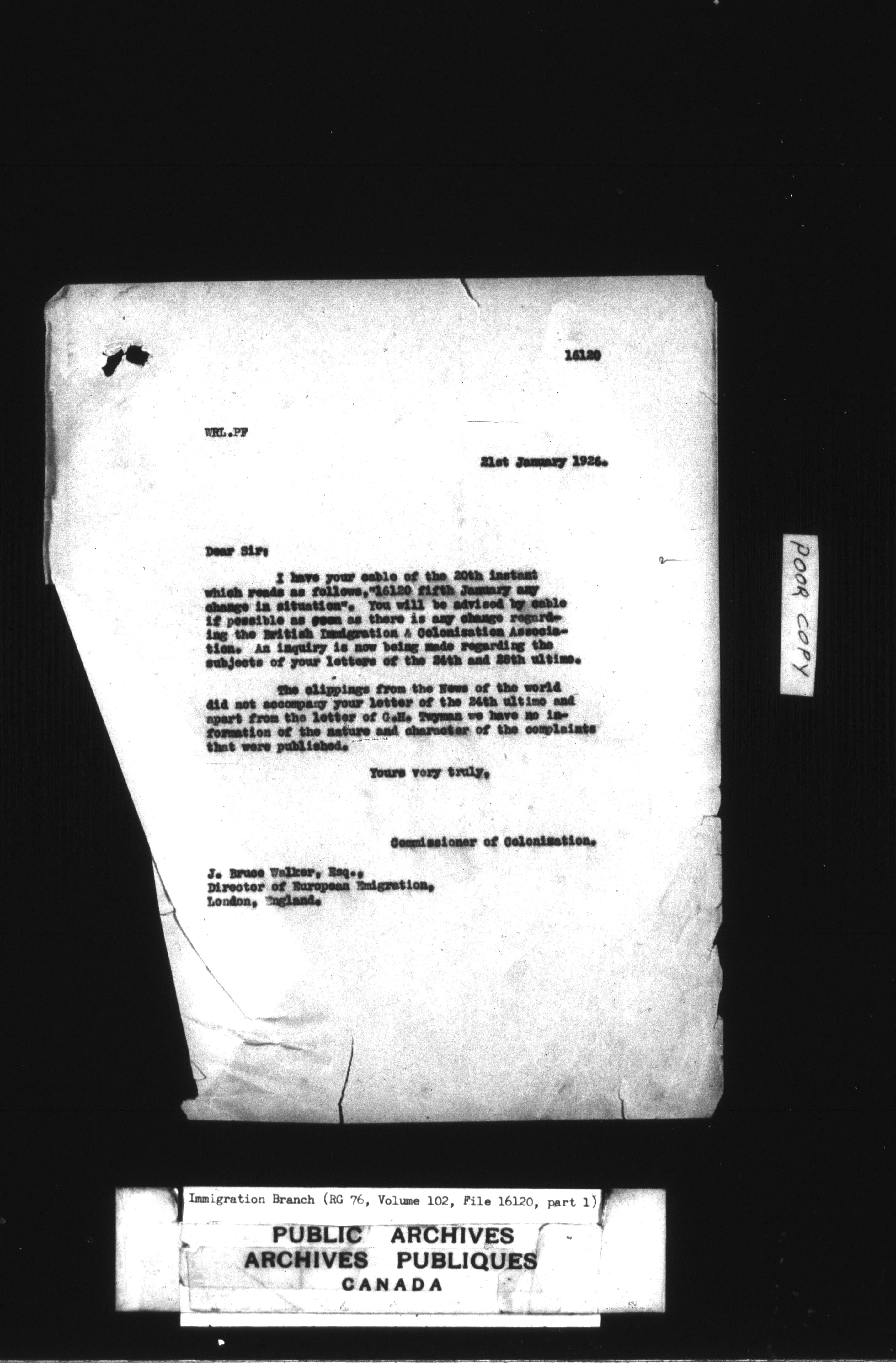 Subject, policy and case files in the First Central Registry series of the Immigration Program, 1892-1950 - 4766