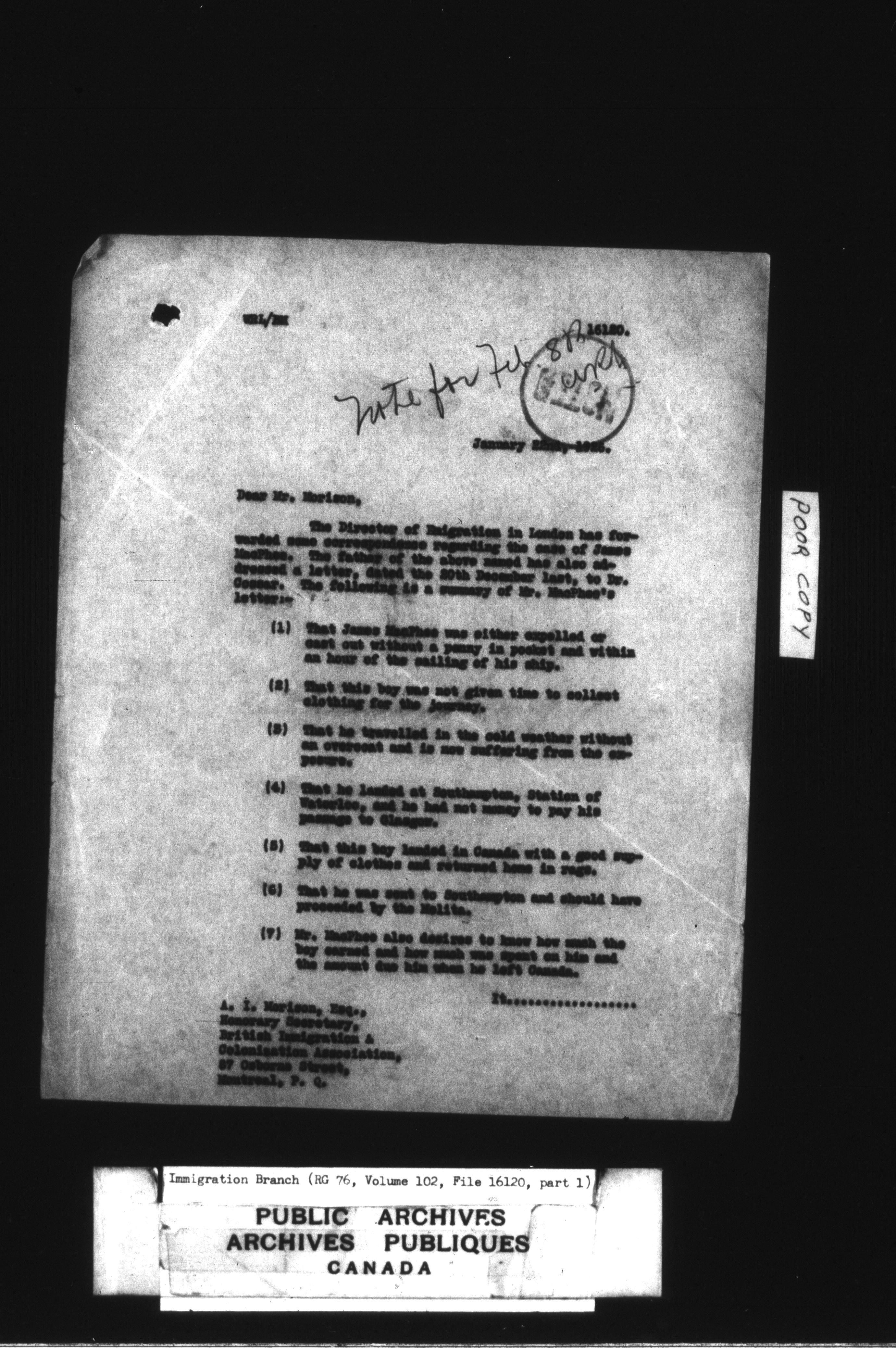 Subject, policy and case files in the First Central Registry series of the Immigration Program, 1892-1950 - 4766