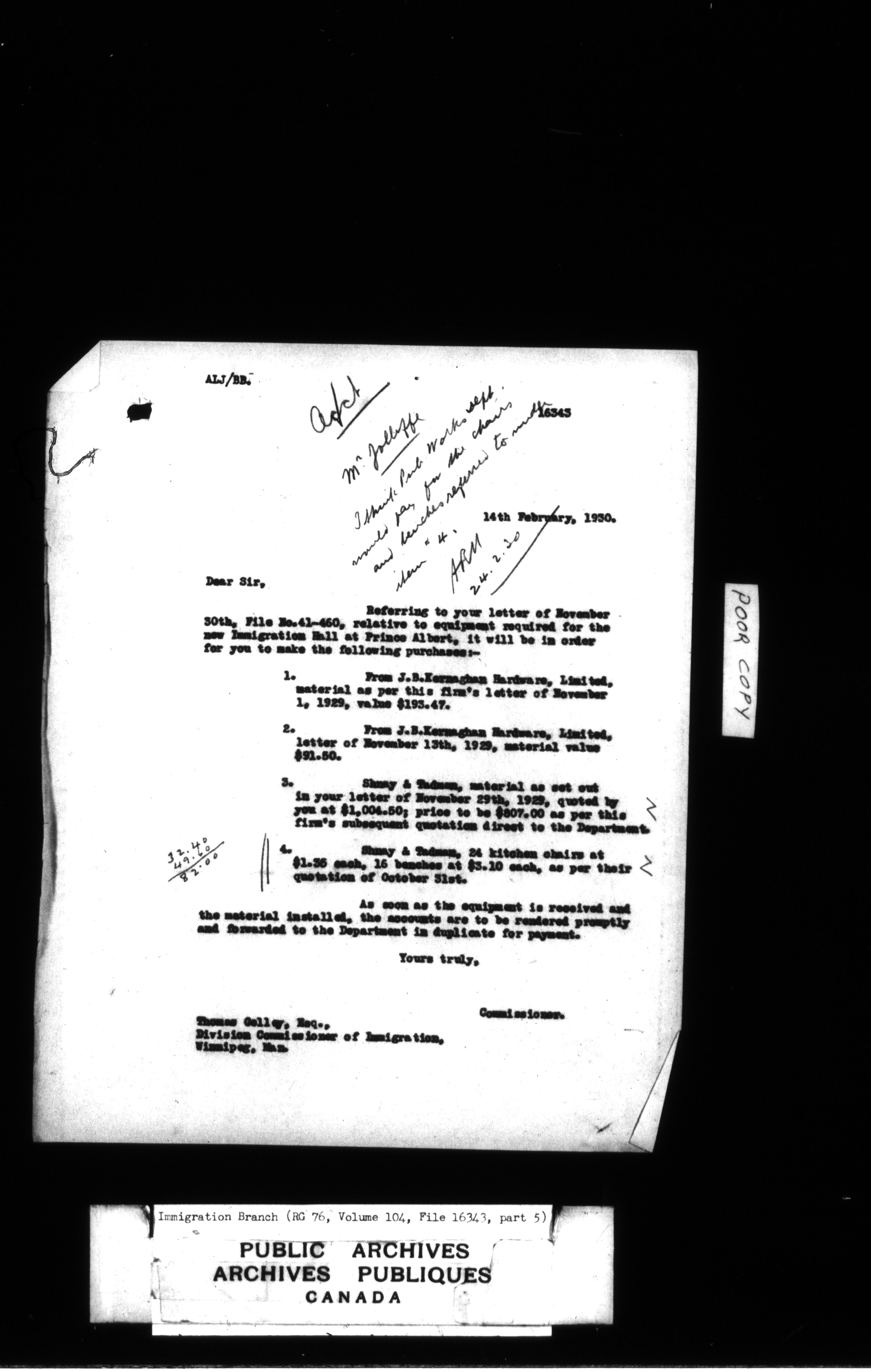Subject, policy and case files in the First Central Registry series of the Immigration Program, 1892-1950 - 4767