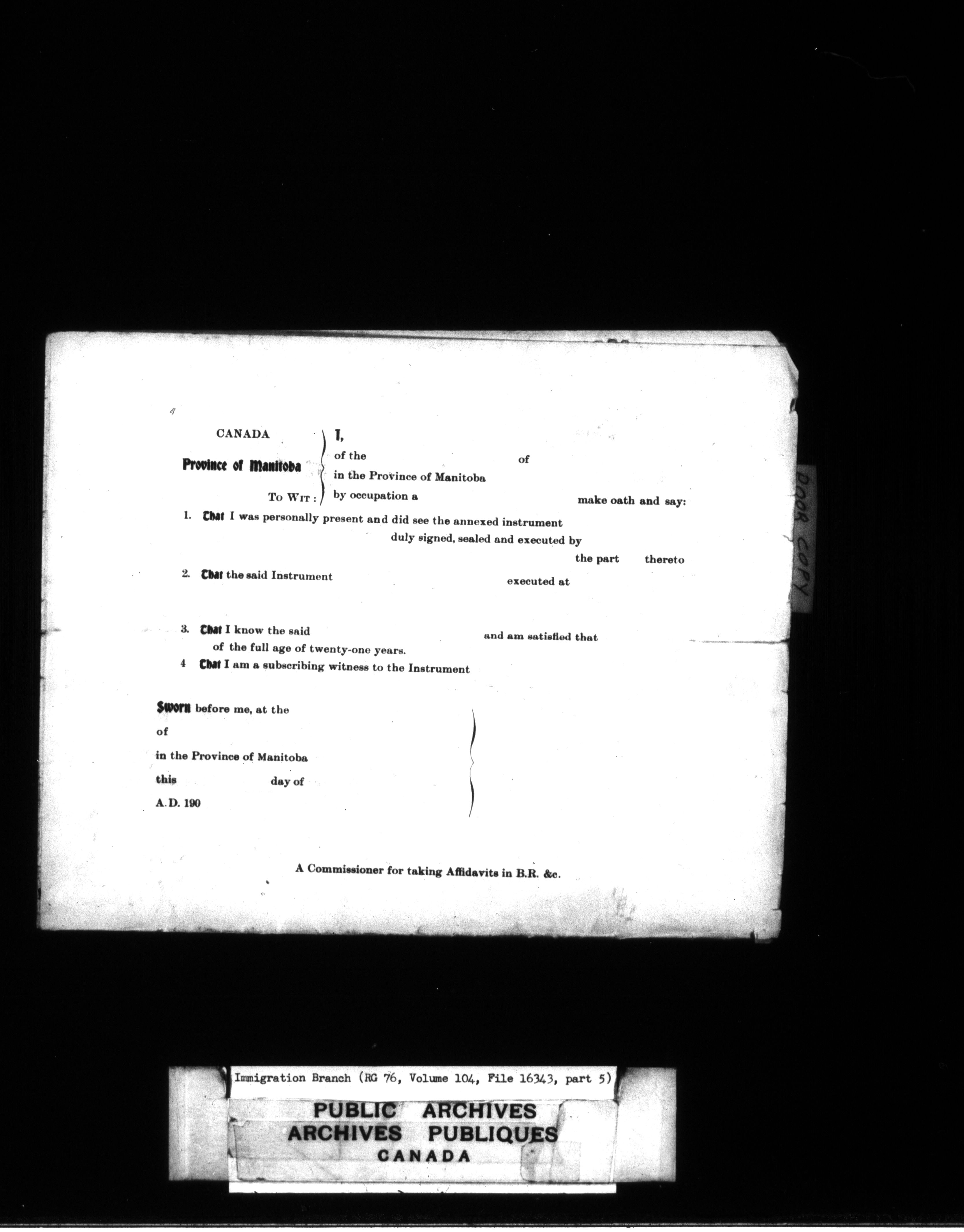 Subject, policy and case files in the First Central Registry series of the Immigration Program, 1892-1950 - 4767