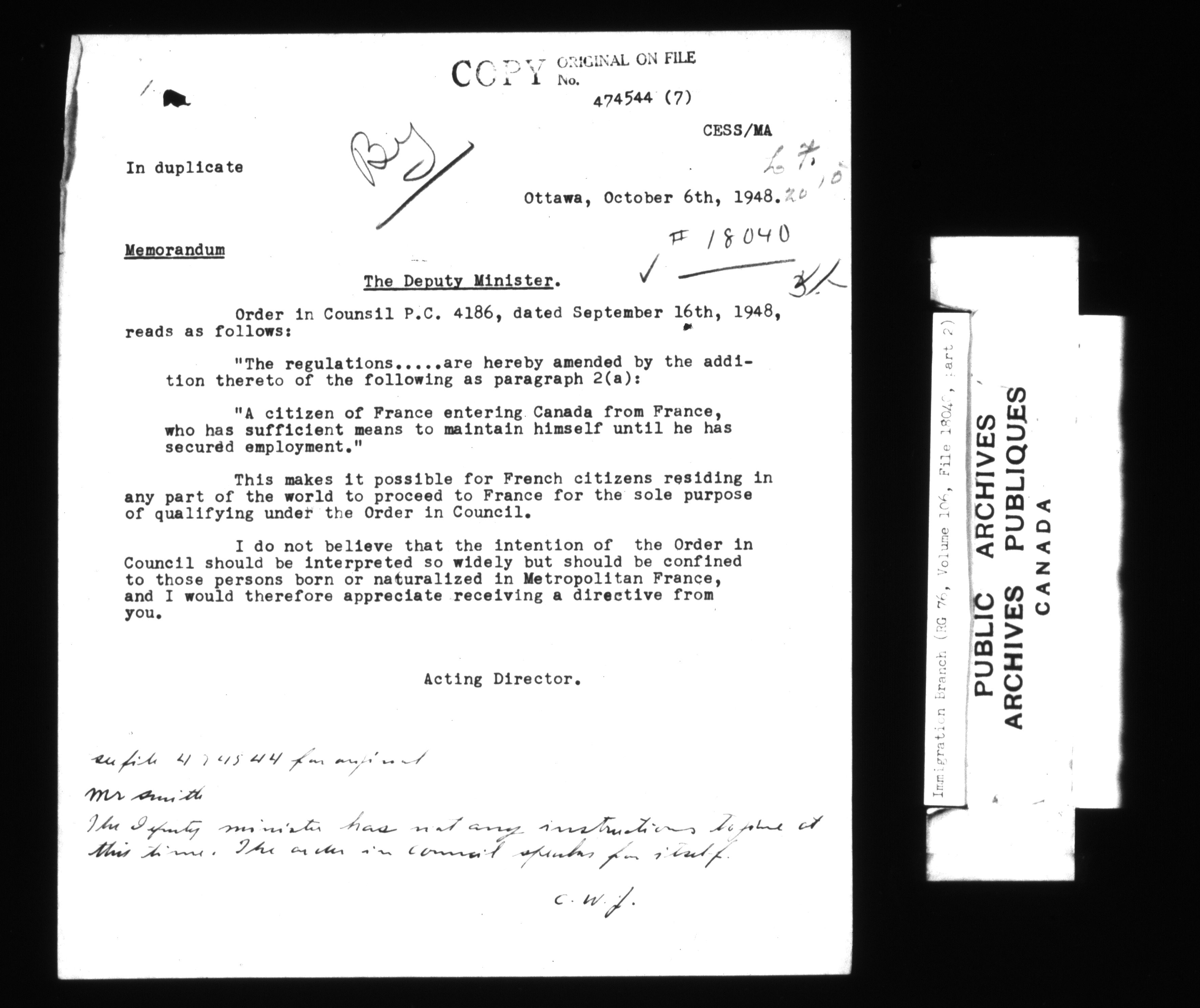 Subject, policy and case files in the First Central Registry series of the Immigration Program, 1892-1950 - 4769