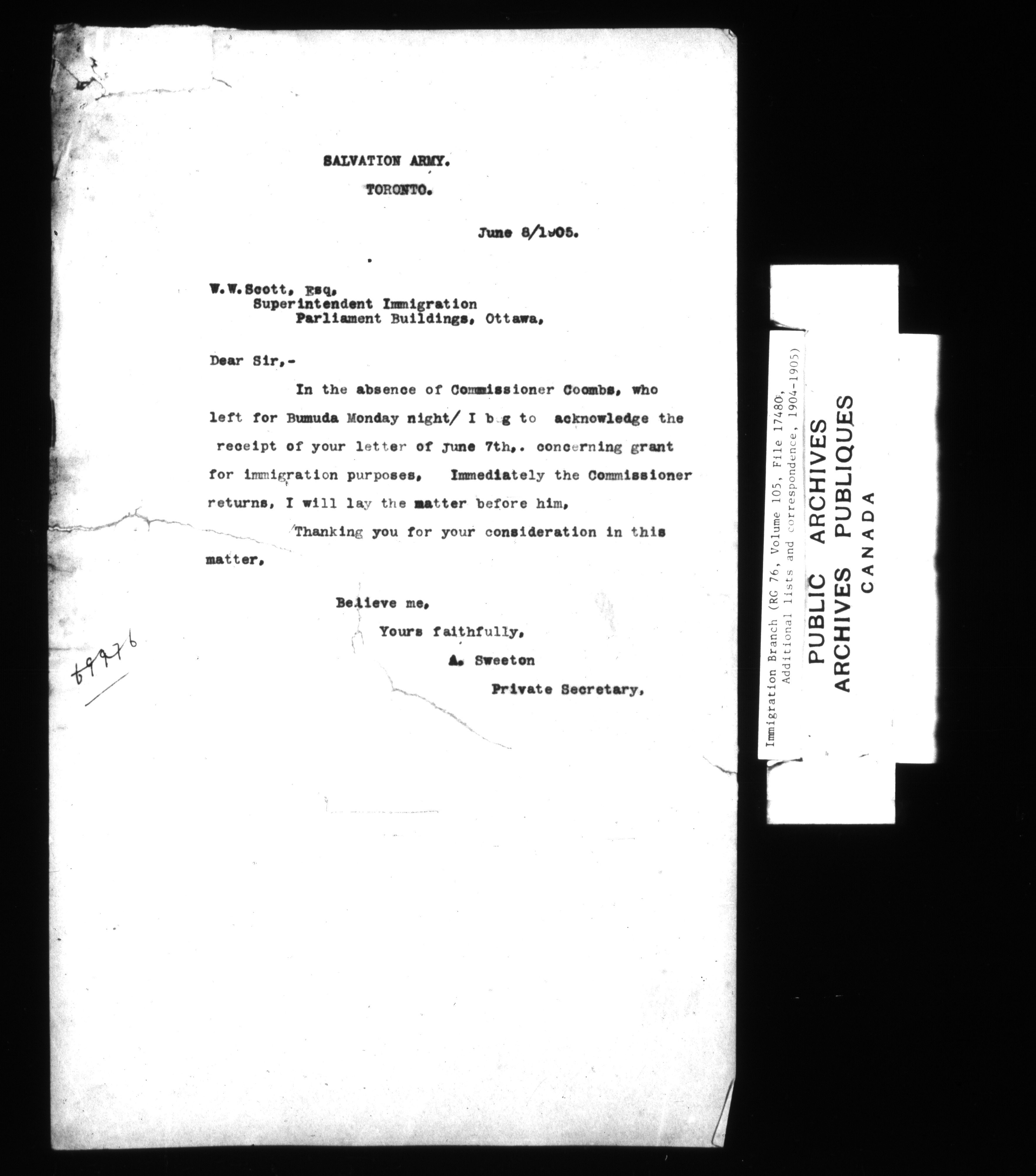Subject, policy and case files in the First Central Registry series of the Immigration Program, 1892-1950 - 4769