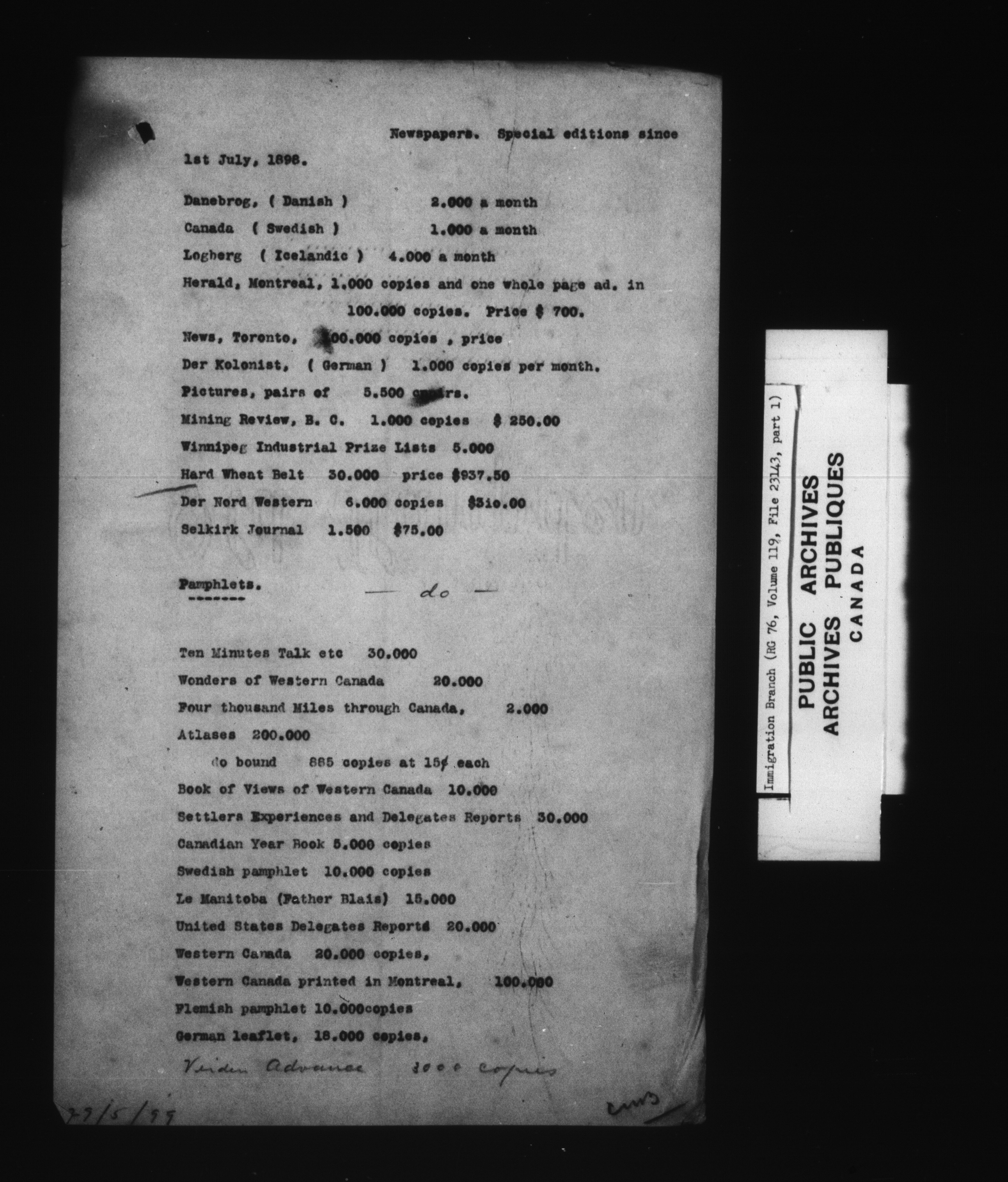 Subject, policy and case files in the First Central Registry series of the Immigration Program, 1892-1950 - 4783