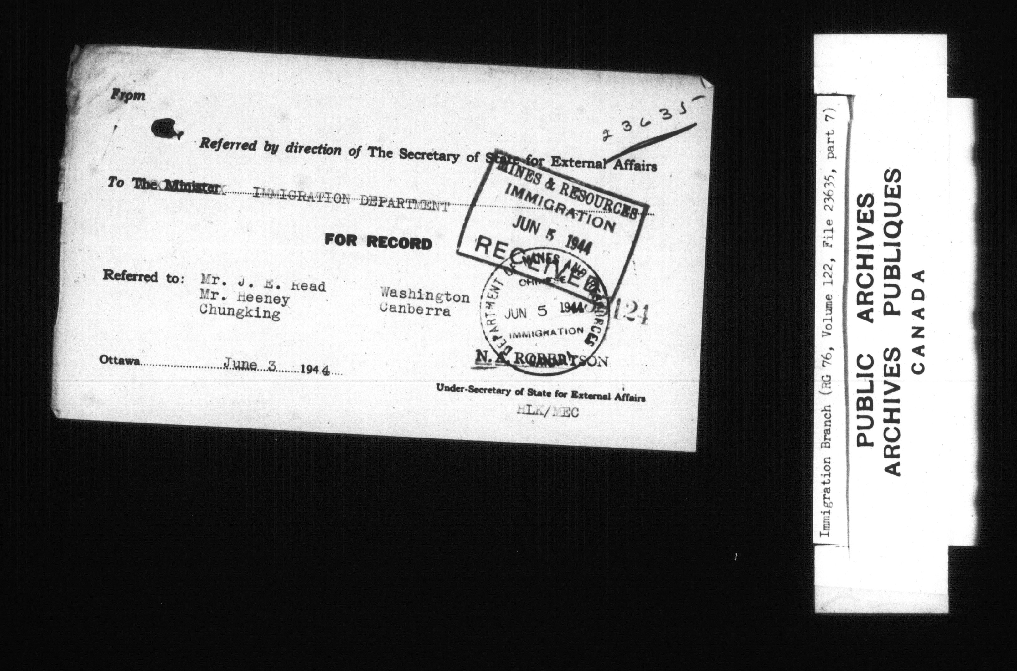 Subject, policy and case files in the First Central Registry series of the Immigration Program, 1892-1950 - 4785
