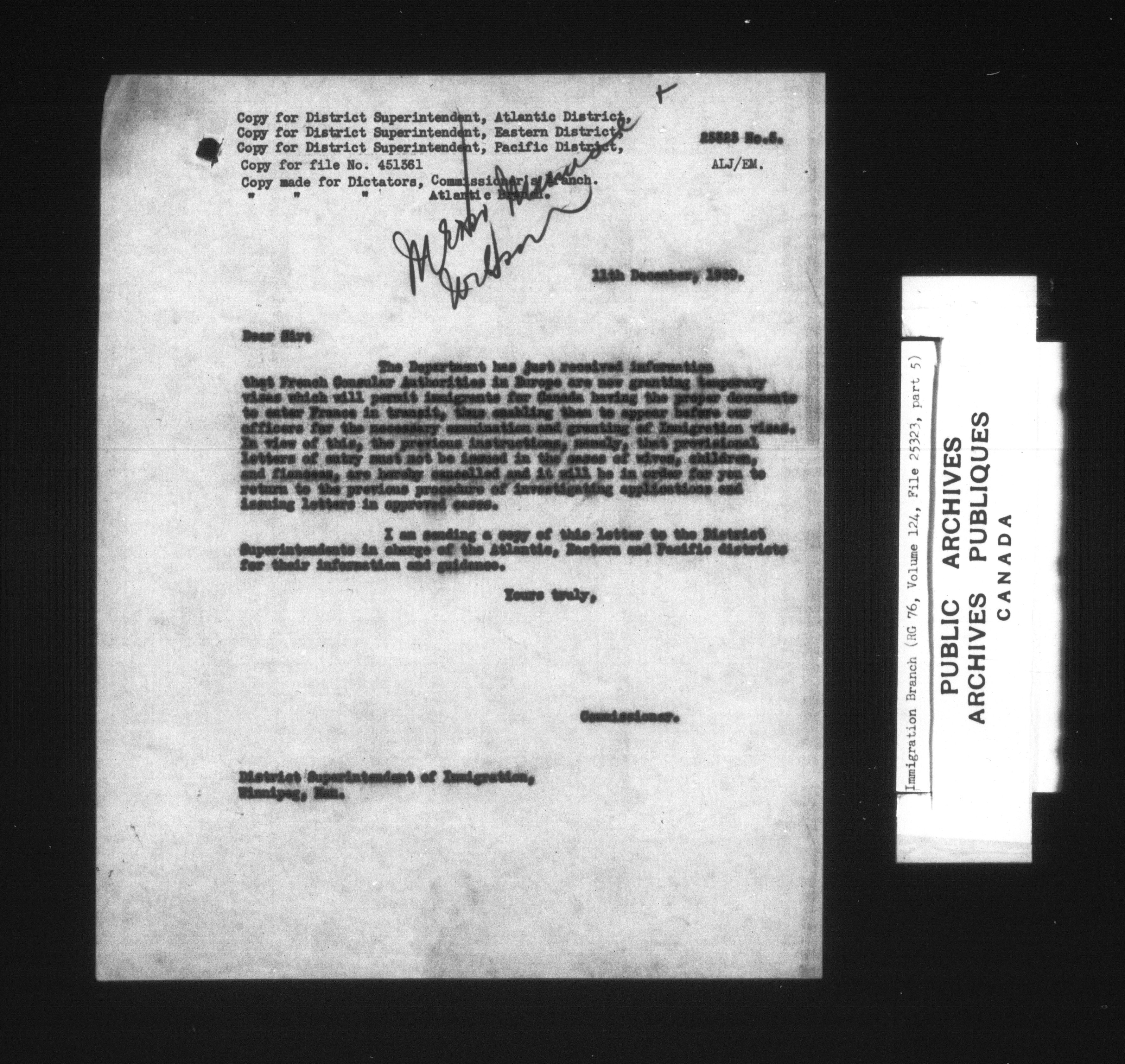 Subject, policy and case files in the First Central Registry series of the Immigration Program, 1892-1950 - 4787