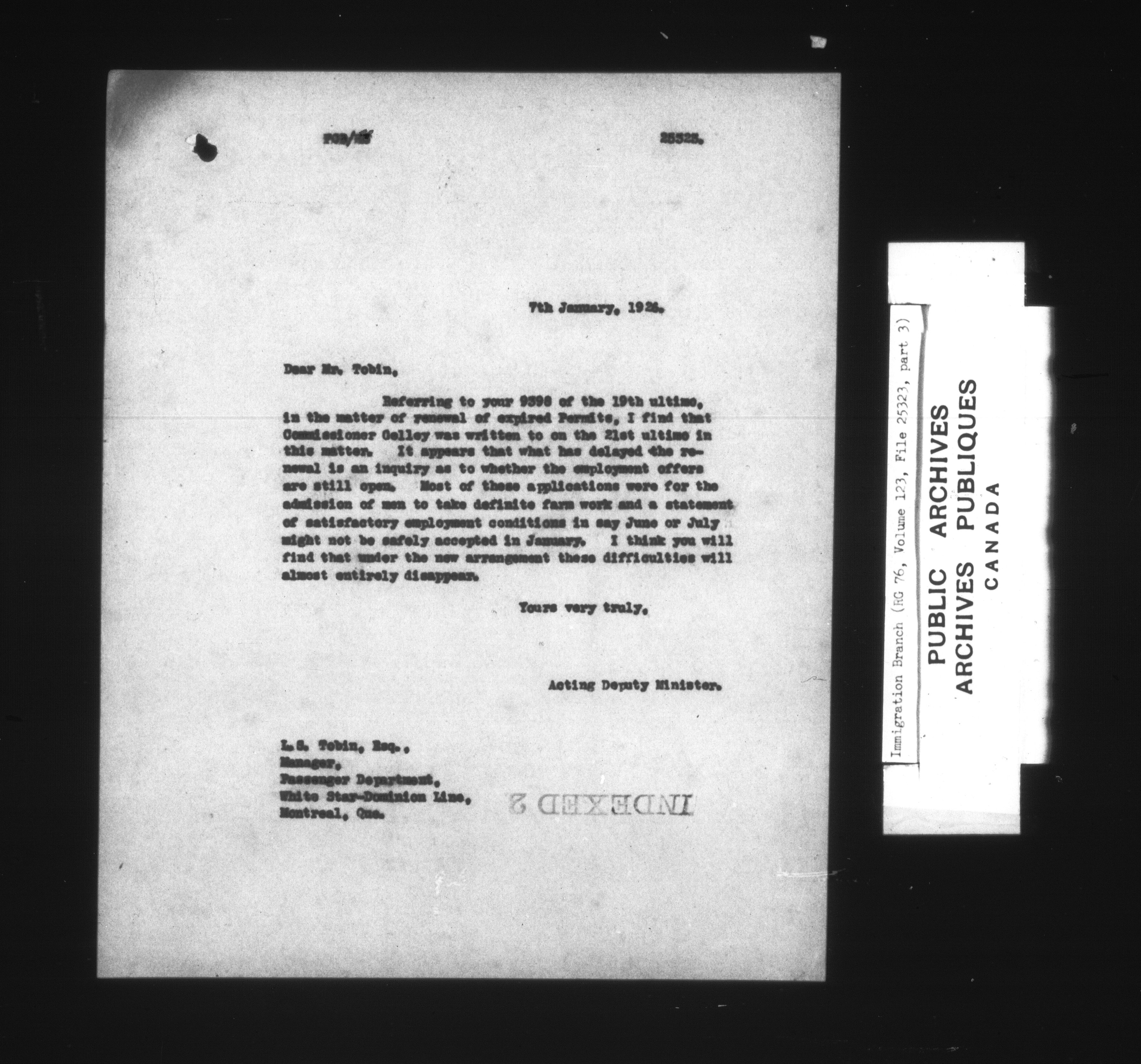 Subject, policy and case files in the First Central Registry series of the Immigration Program, 1892-1950 - 4787