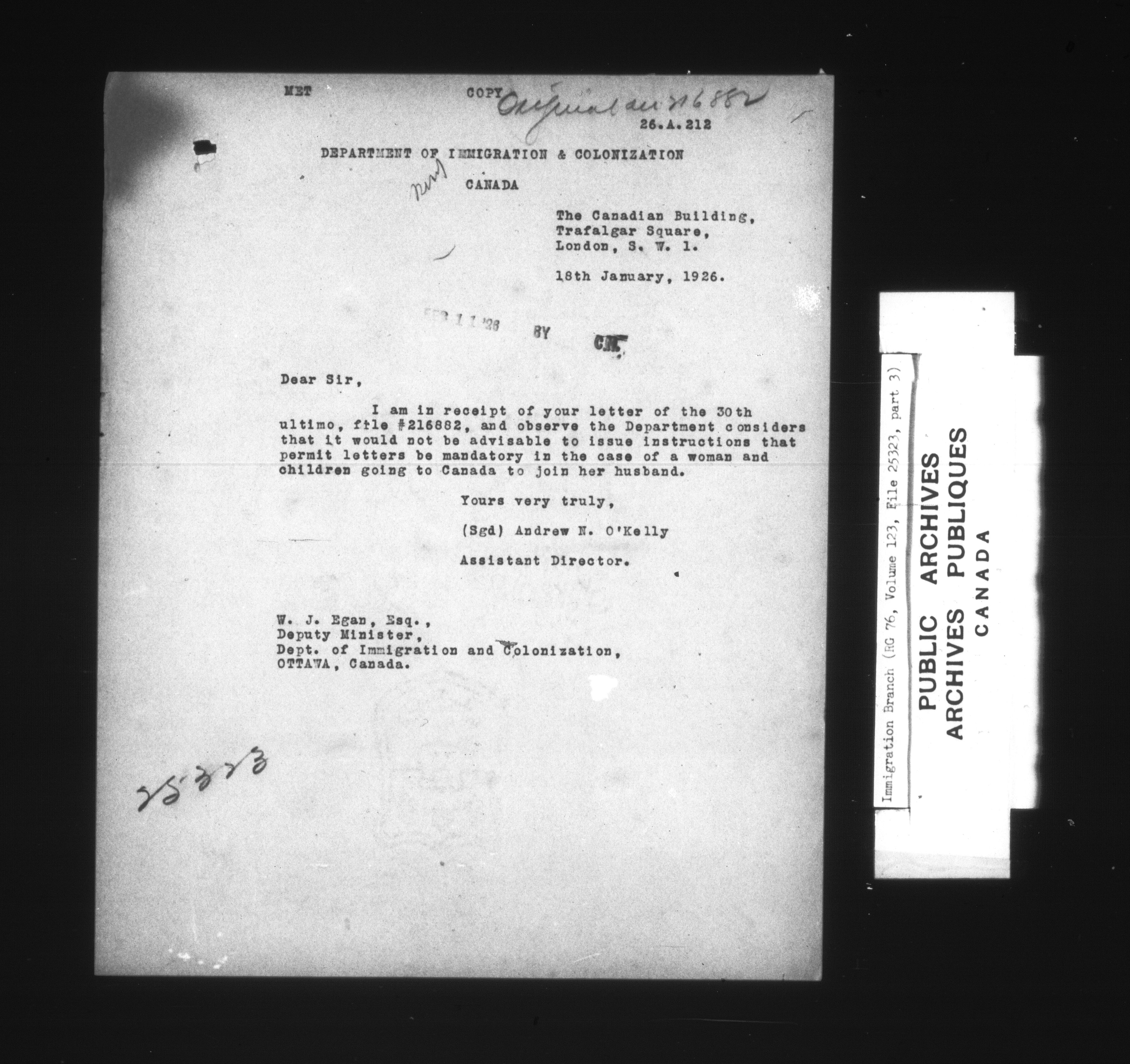 Subject, policy and case files in the First Central Registry series of the Immigration Program, 1892-1950 - 4787