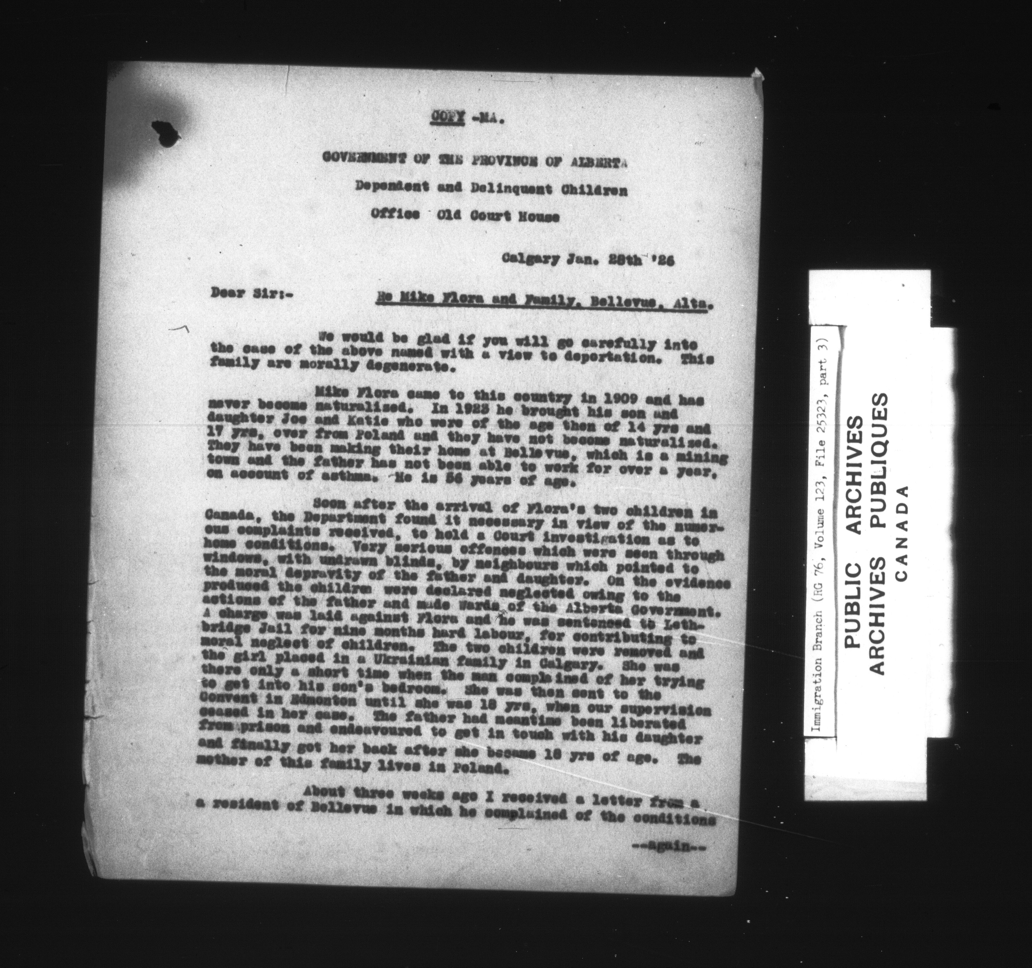 Subject, policy and case files in the First Central Registry series of the Immigration Program, 1892-1950 - 4787