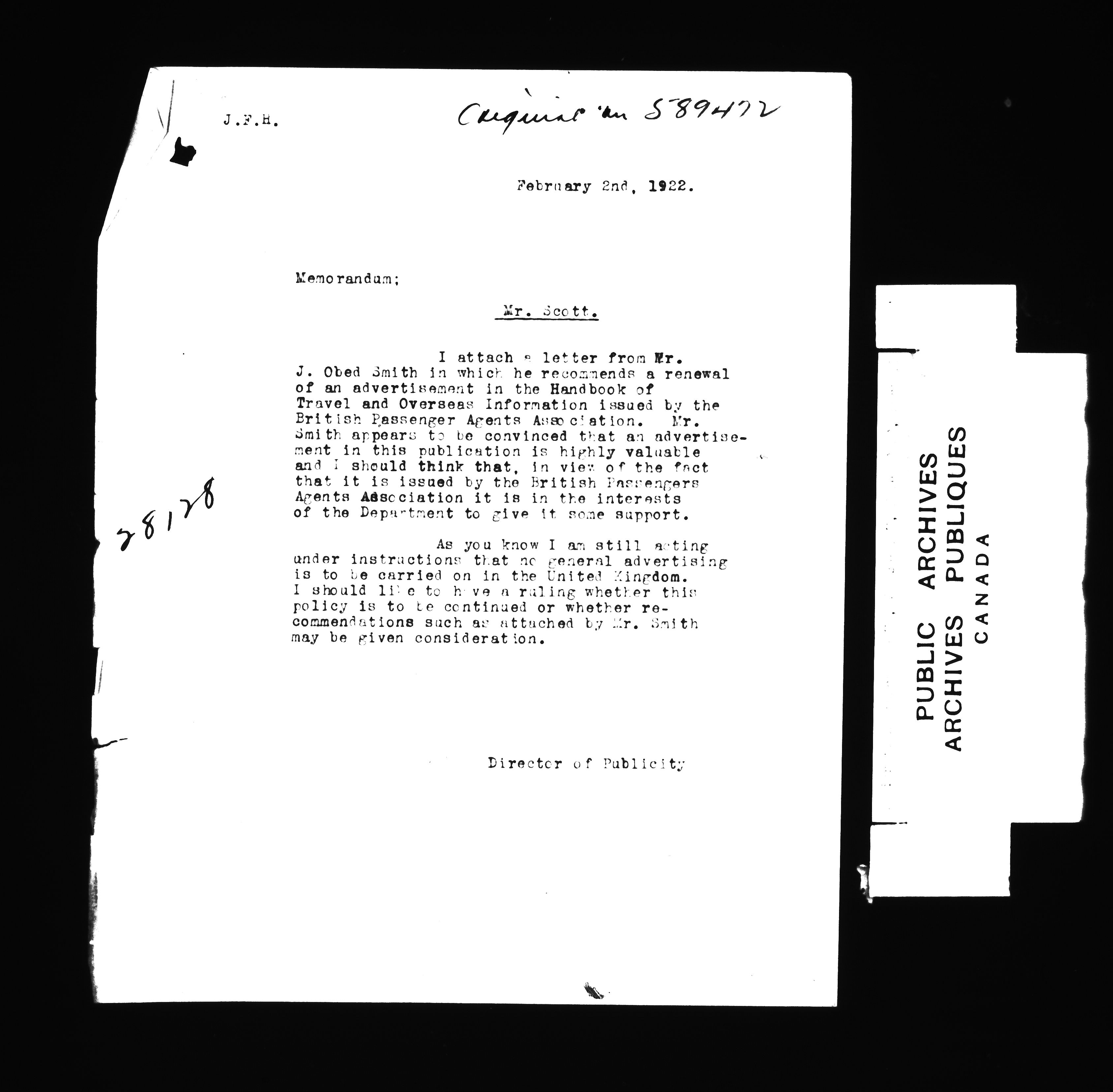 Subject, policy and case files in the First Central Registry series of the Immigration Program, 1892-1950 - 4789