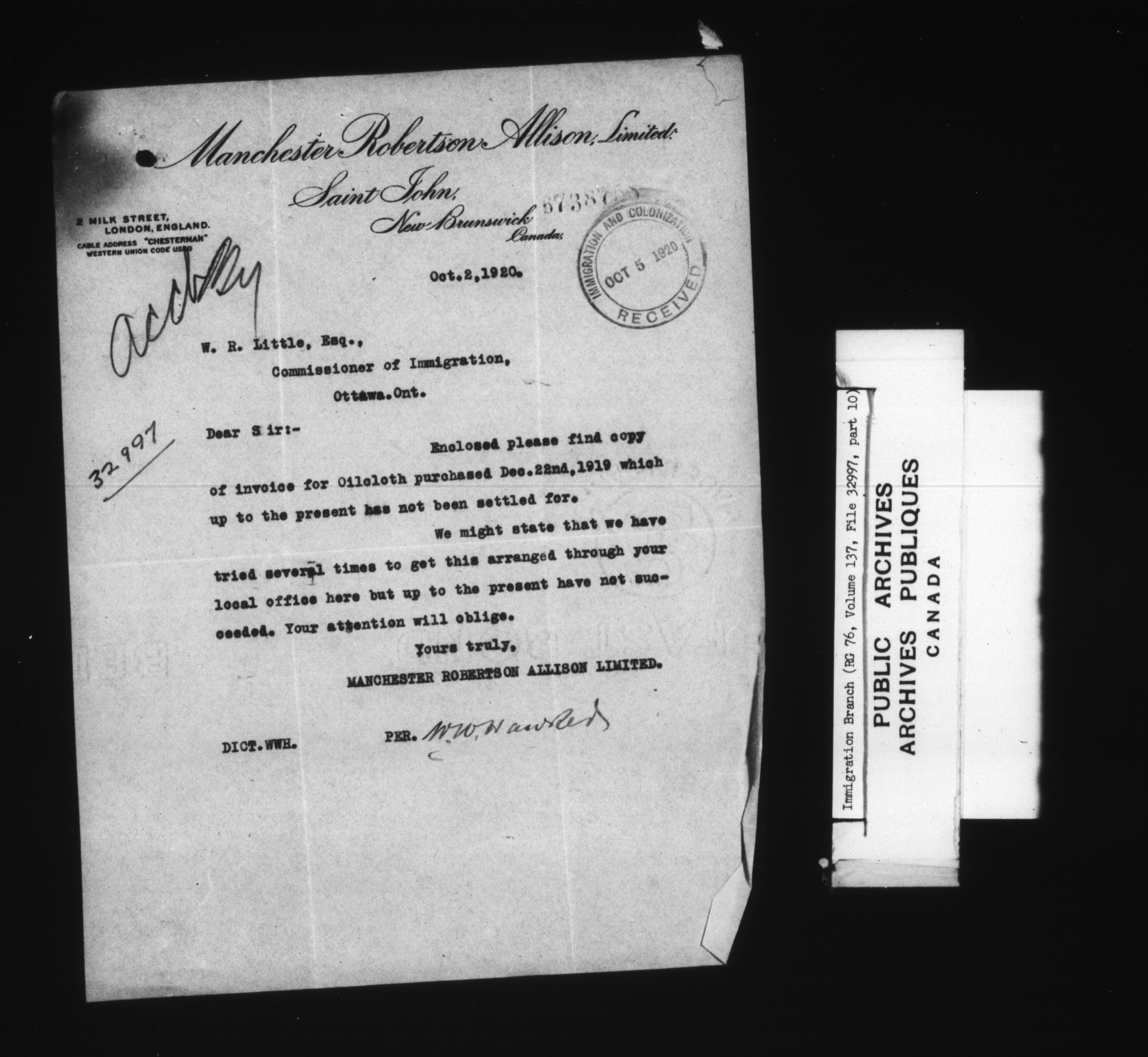 Subject, policy and case files in the First Central Registry series of the Immigration Program, 1892-1950 - 4800