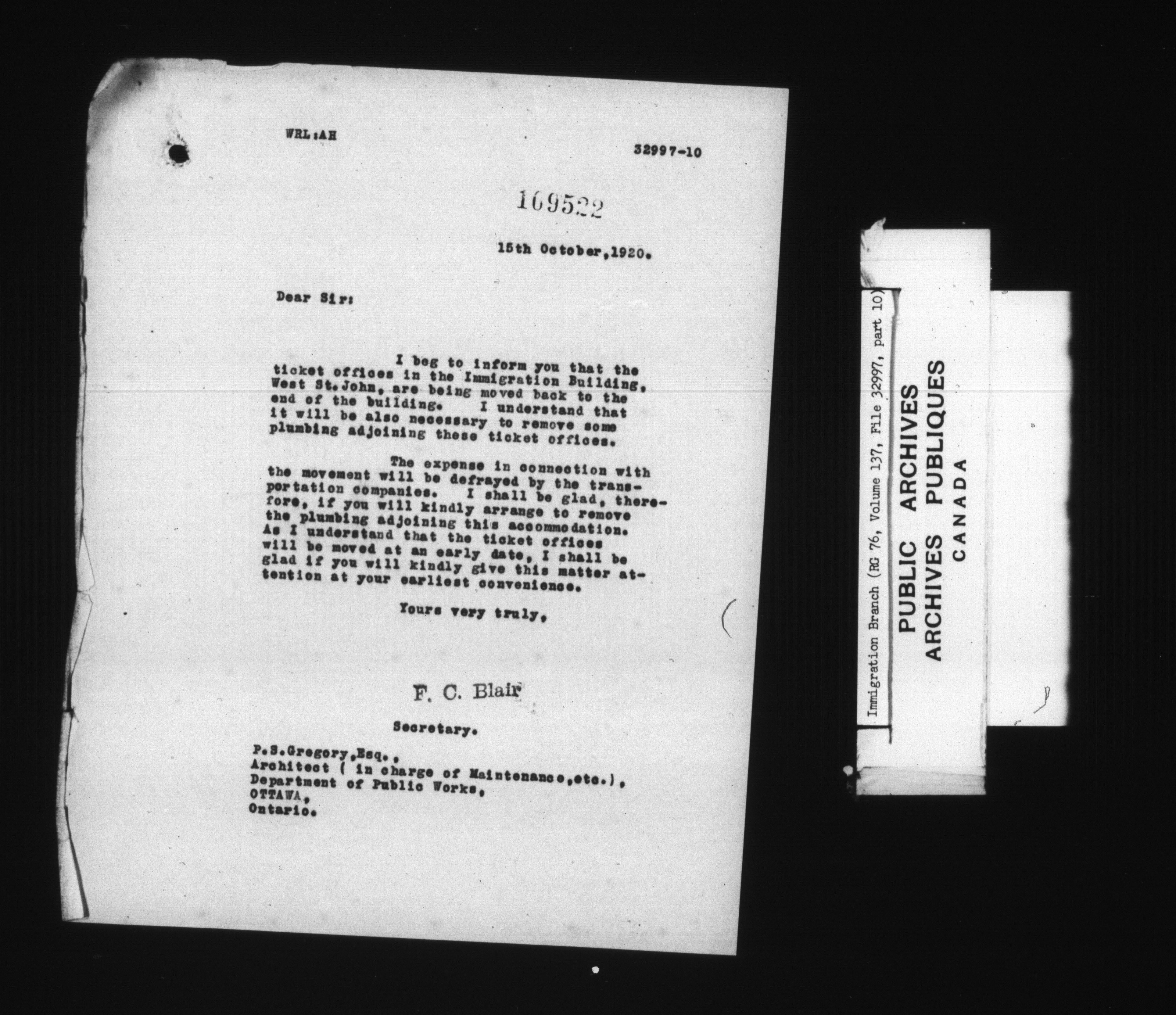 Subject, policy and case files in the First Central Registry series of the Immigration Program, 1892-1950 - 4800