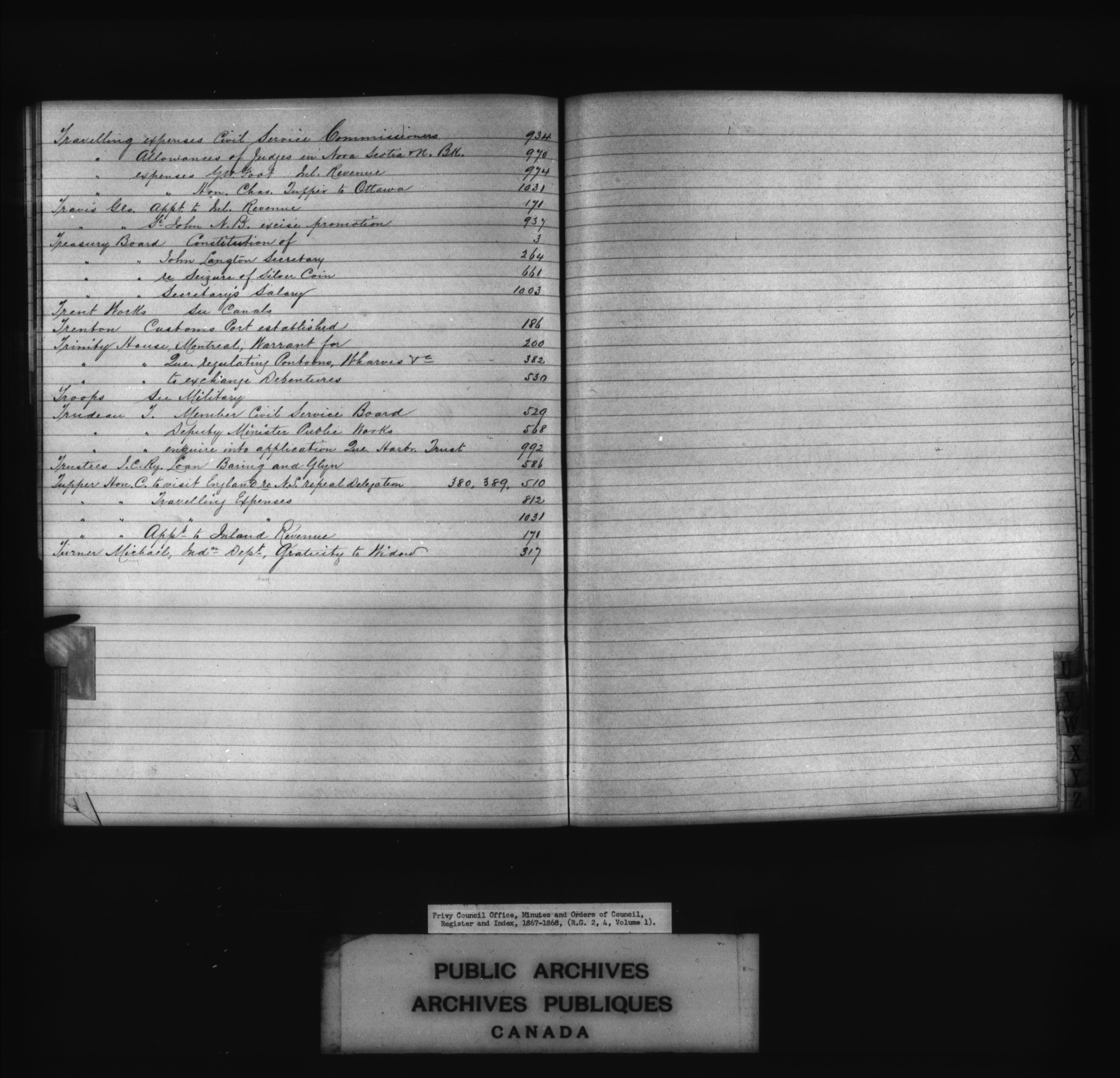 Privy Council Office, Minutes and Orders of Council : register and index