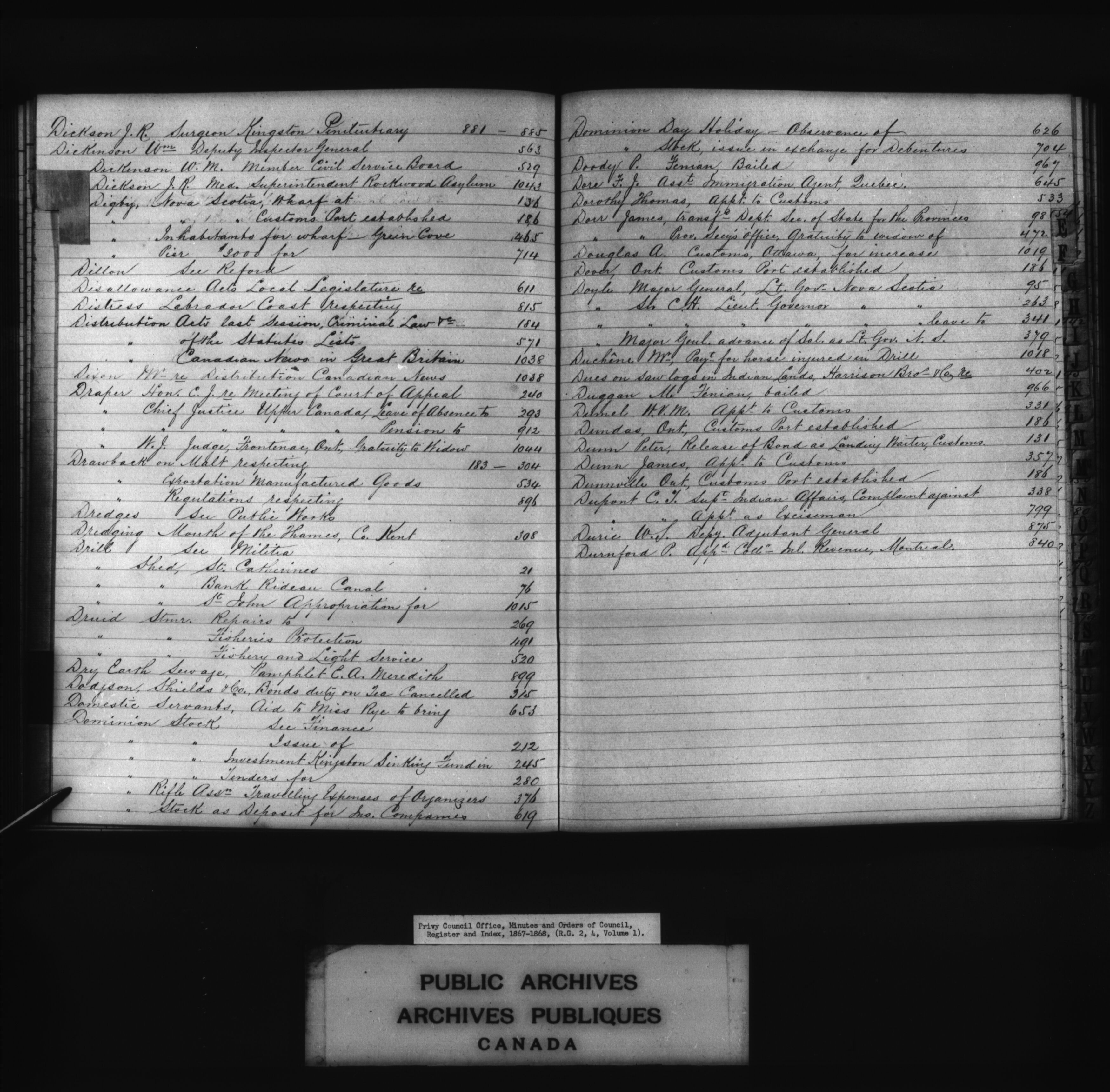 Privy Council Office, Orders in Council : indexes and registers : C-4801
