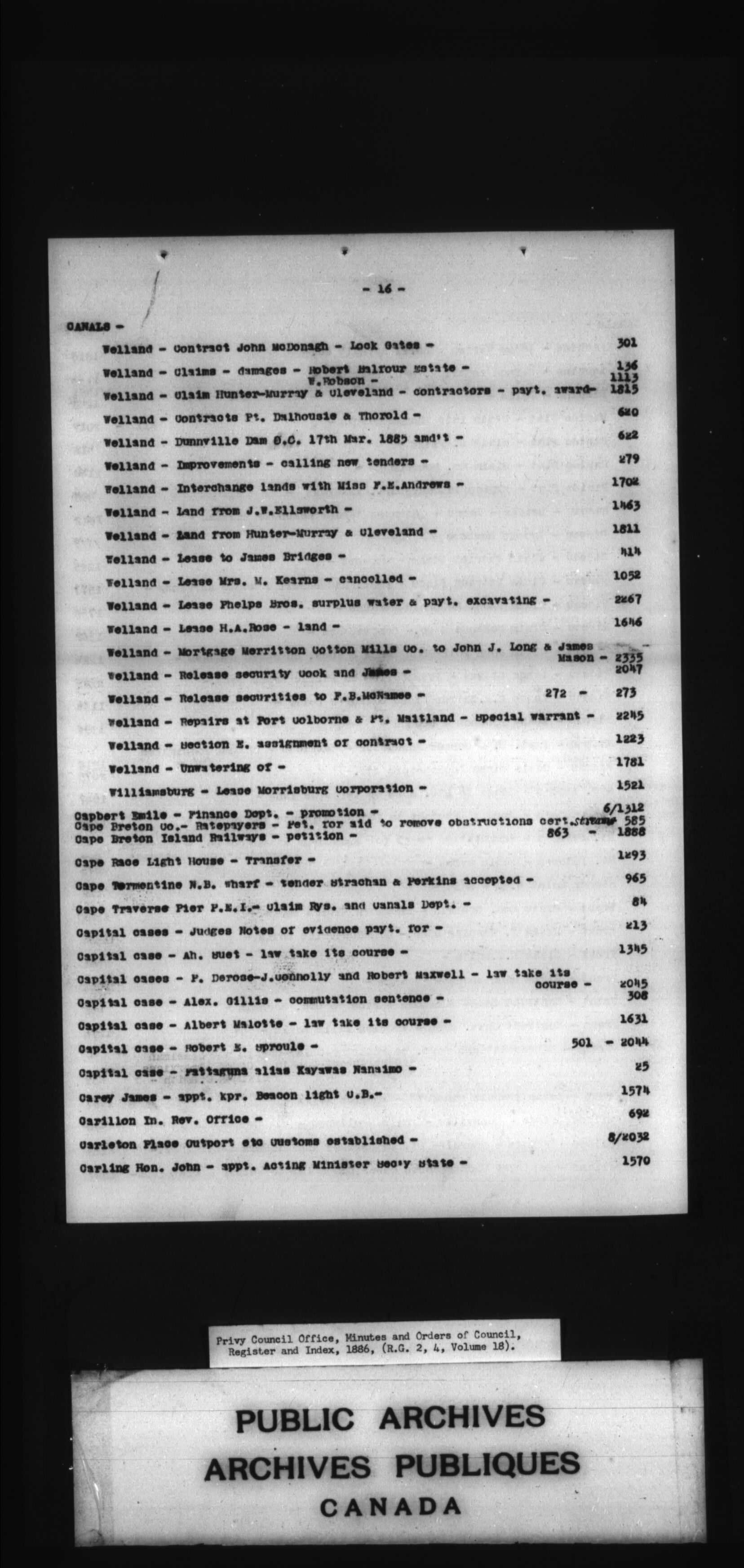 Privy Council Office, Minutes and Orders of Council : register and index