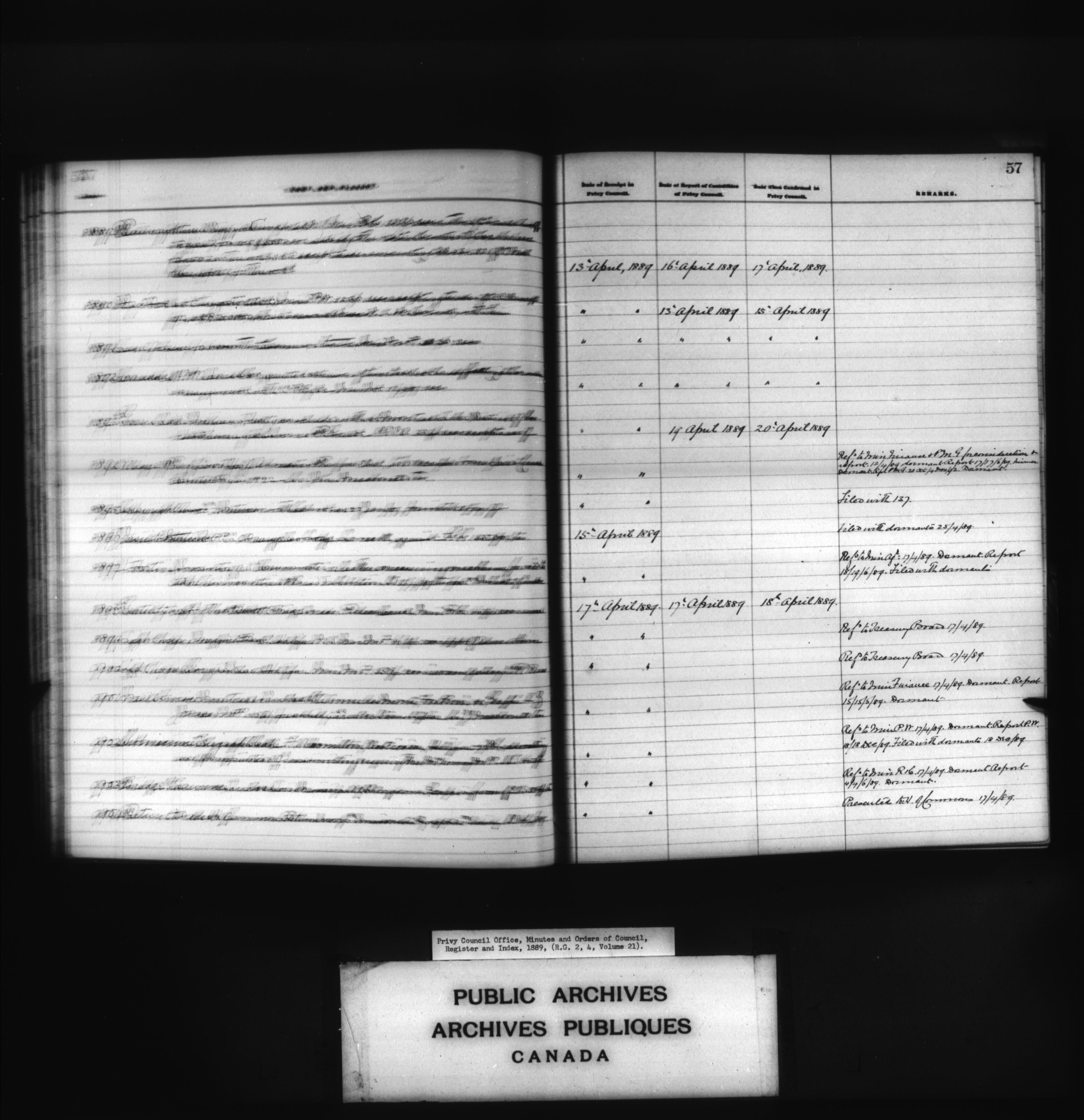 Privy Council Office, Minutes and Orders of Council : register and index