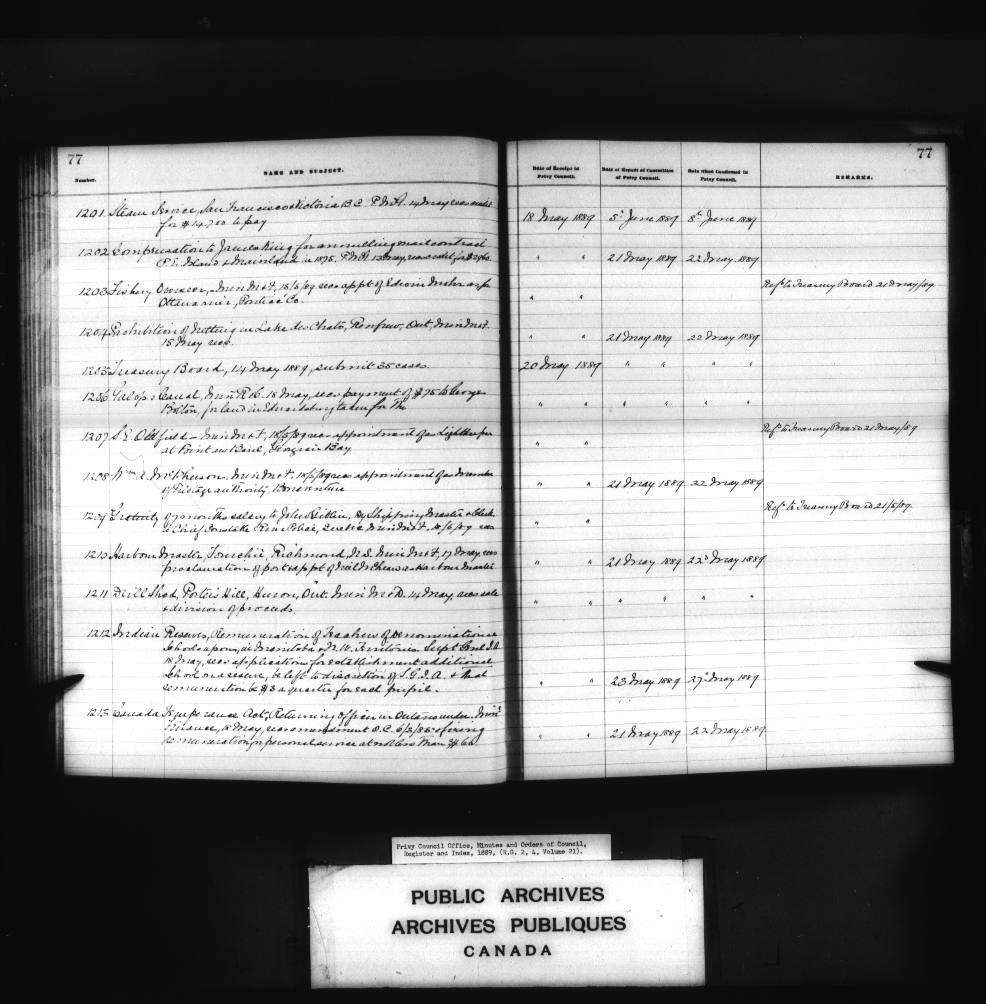 Privy Council Office, Minutes and Orders of Council : register and index